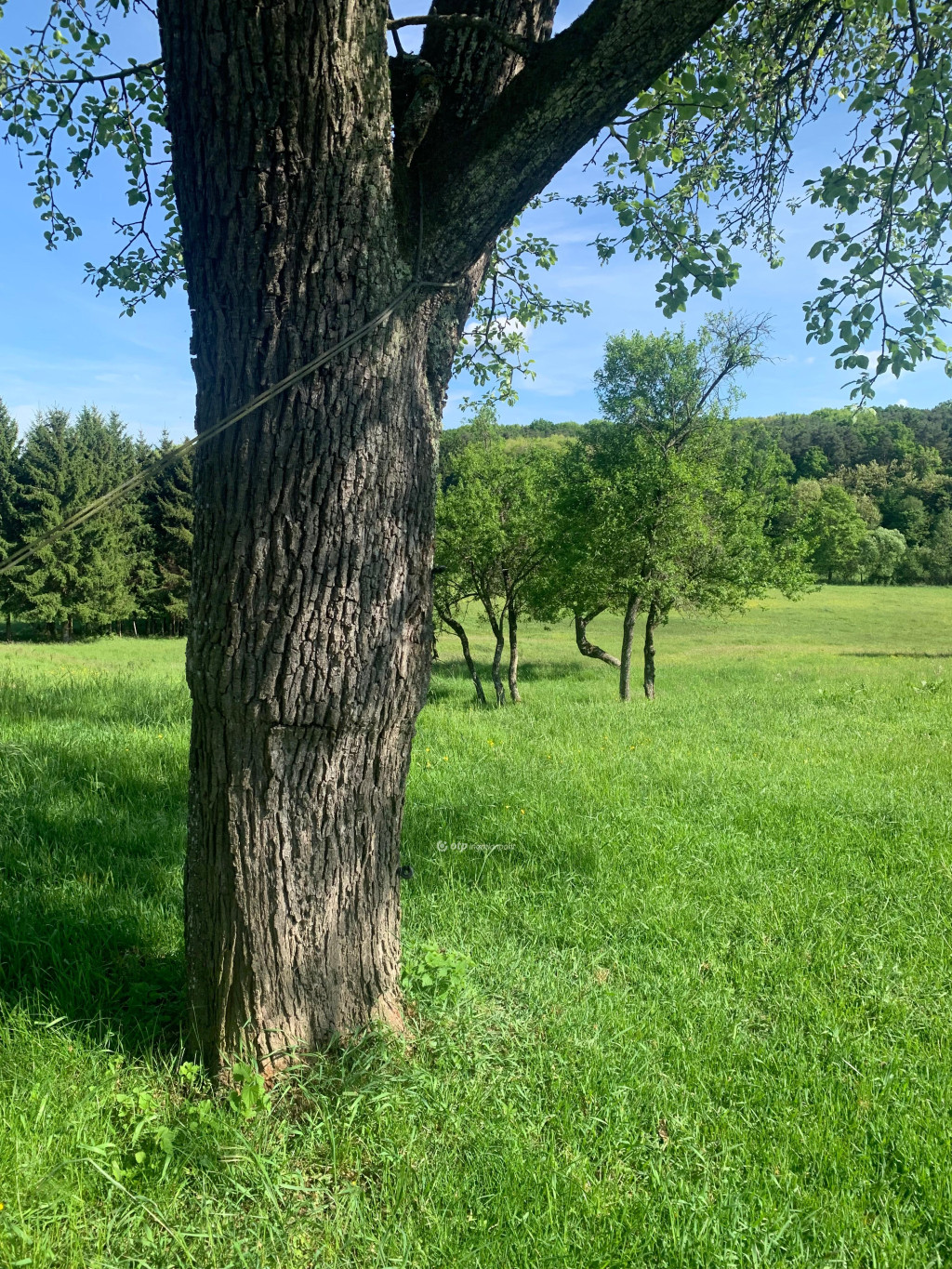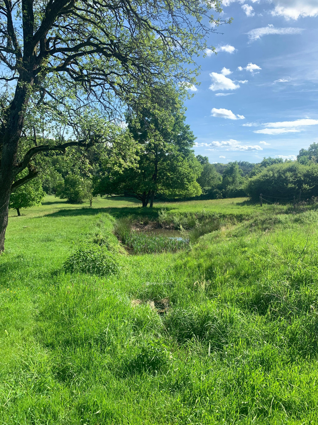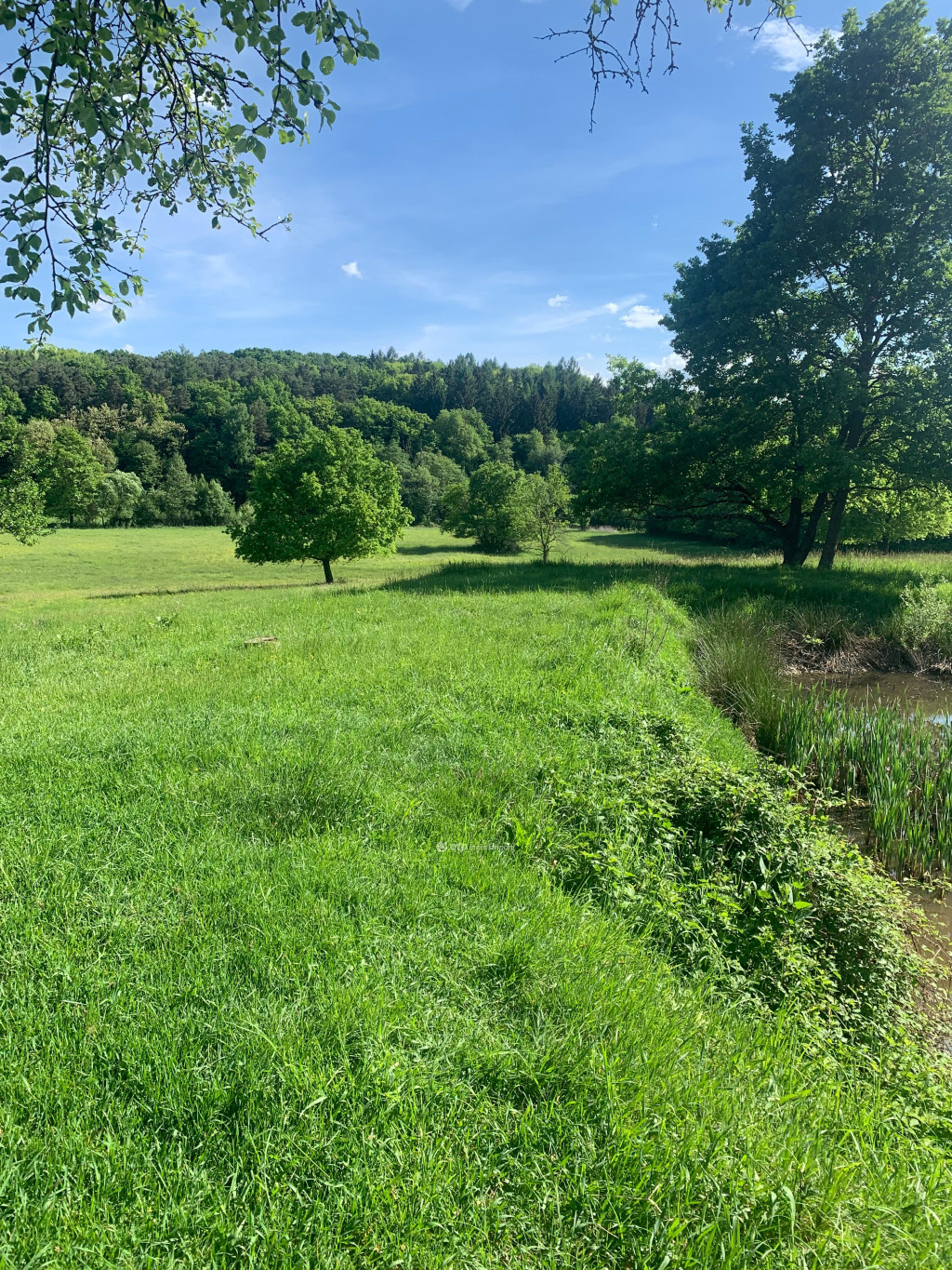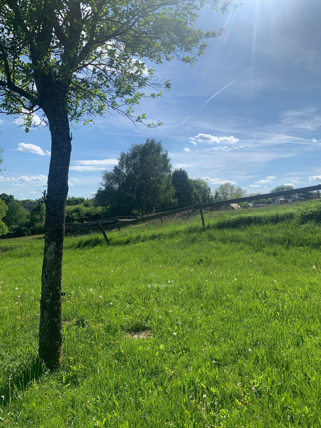 Az eladásra kínált ingatlan a domb tetején helyezkedik el, lábai előtt több hektárnyi rét, erdő, legelő, patak.