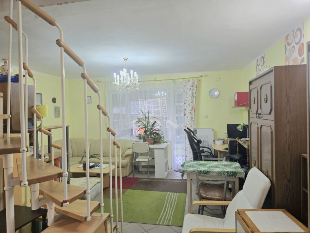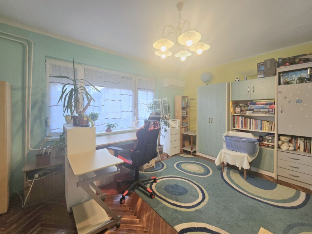 Az ingatlan 3 szobával rendelkezik, praktikus elrendezésének köszönhetően kényelmes életteret biztosít akár többgyermekes család számára is. A földszinti nagyszoba gyakorlatilag nappaliként funkcionál, az emeleti 2 szoba kiváló nyugalmat biztosít az éjszakai pihenésre. A lakás részben felújított, műszaki állapota kiváló: