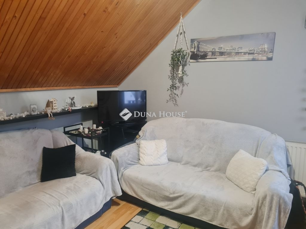 A külső lépcsőn keresztül megközelíthető emeleten további 2 szoba, fiatalos nappali, világos konyha és pazar fürdőszoba került kialakításra.