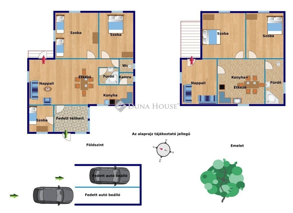 A földszinten egy világos, komfortos nappali, étkezővel, konyha, 3 szoba, fürdőszoba és egy télikert került megvalósításra.