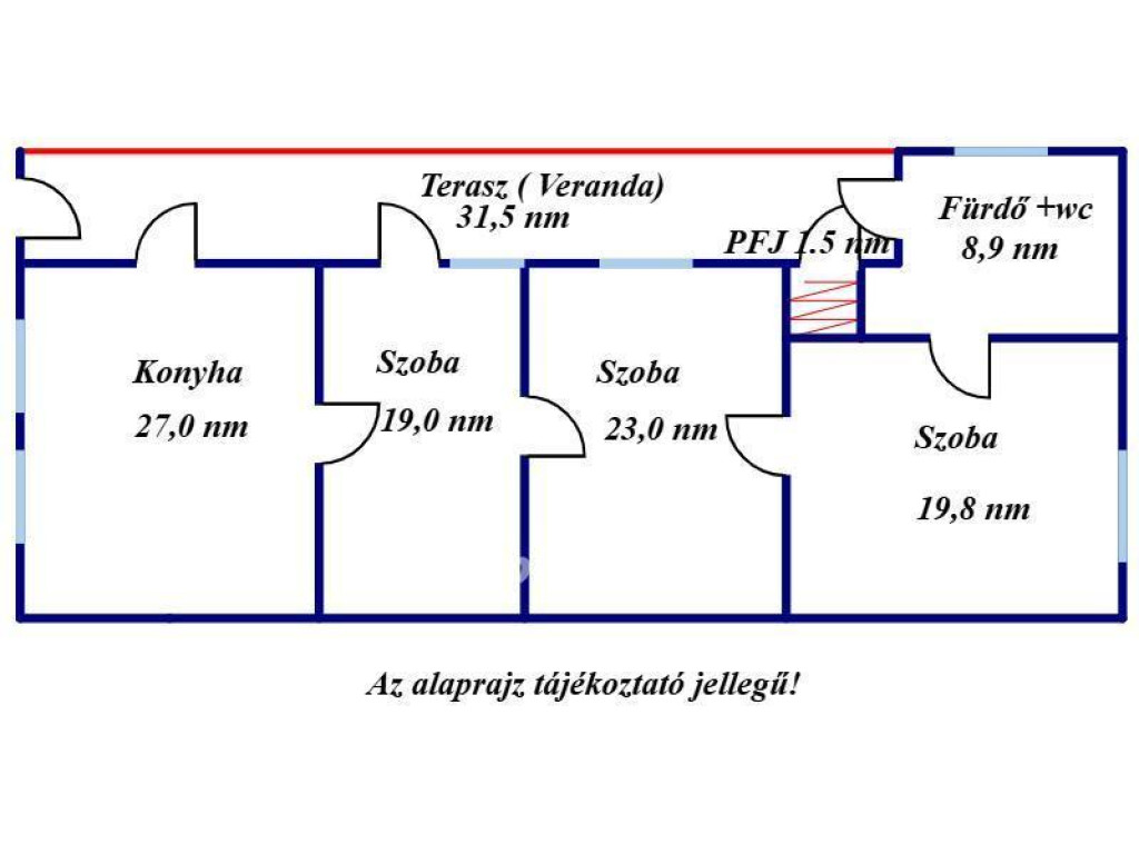Alapterület: 130,7 nm- amiből a terasz (veranda) 31,5 nm