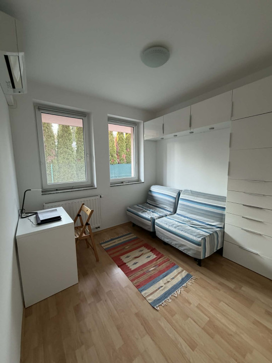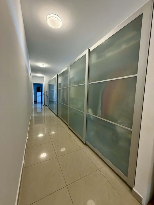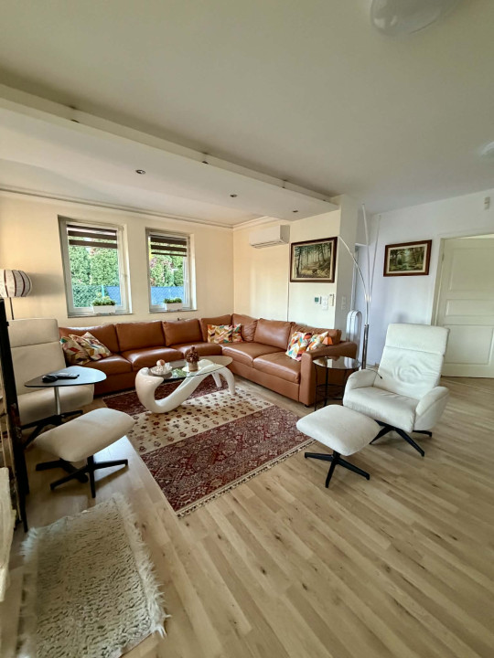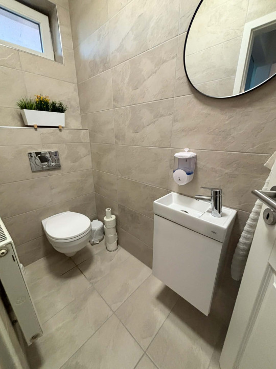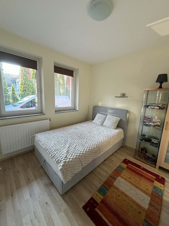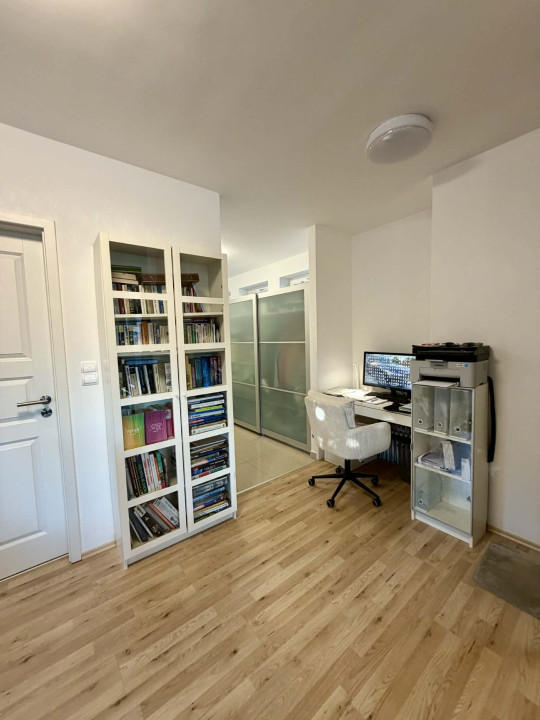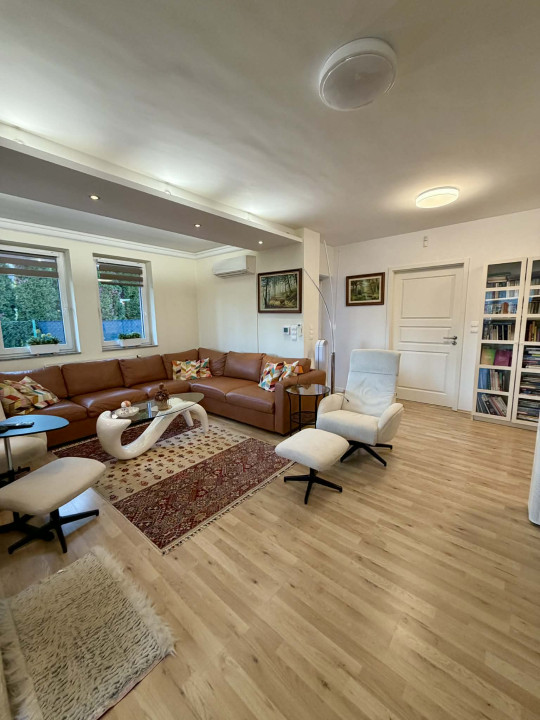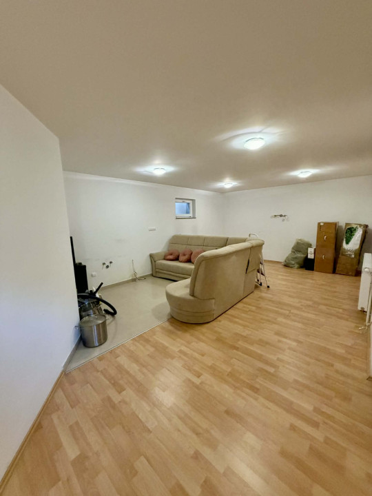 Az alsó szinten egy elektromos kapuval ellátott dupla garázs, egy irodahelyiség, kazánház, fürdőszoba, valamint egy tágas, 40 m2-es helyiség található. Ez a tér jelenleg tárolóként funkcionál, de könnyen kialakítható belőle akár egy külön lakrész, vagy ideális lehet műhelynek, irodának, vállalkozásnak is.