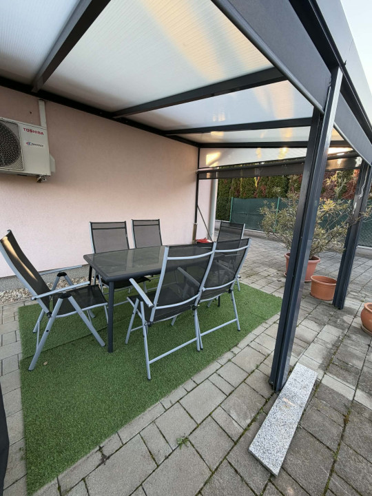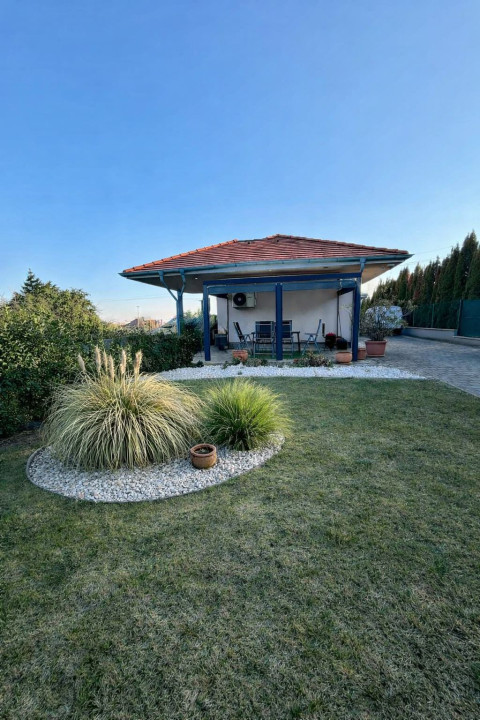 A 953 m2-es udvar kellemes, élhető teret kínál. A fedett teraszról szép kilátás nyílik, ahol jólesik egy nyugodt reggeli kávé vagy egy esti grillezés barátokkal. Az udvaron egy kisebb tároló és egy mobilgarázs is helyet kapott.
