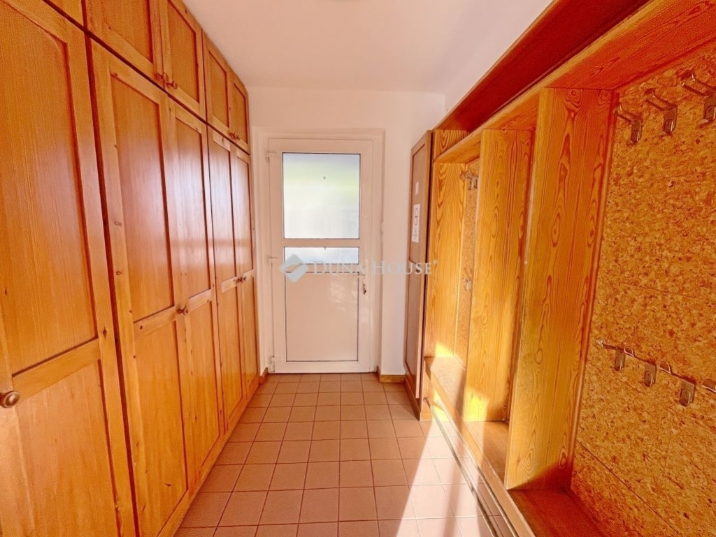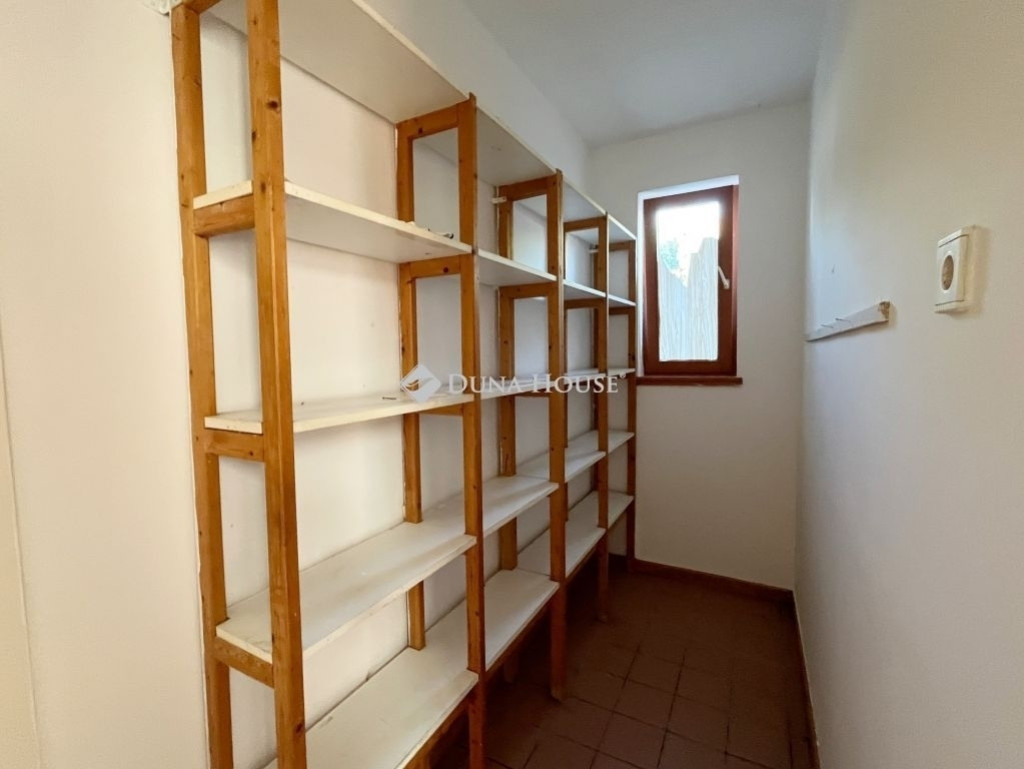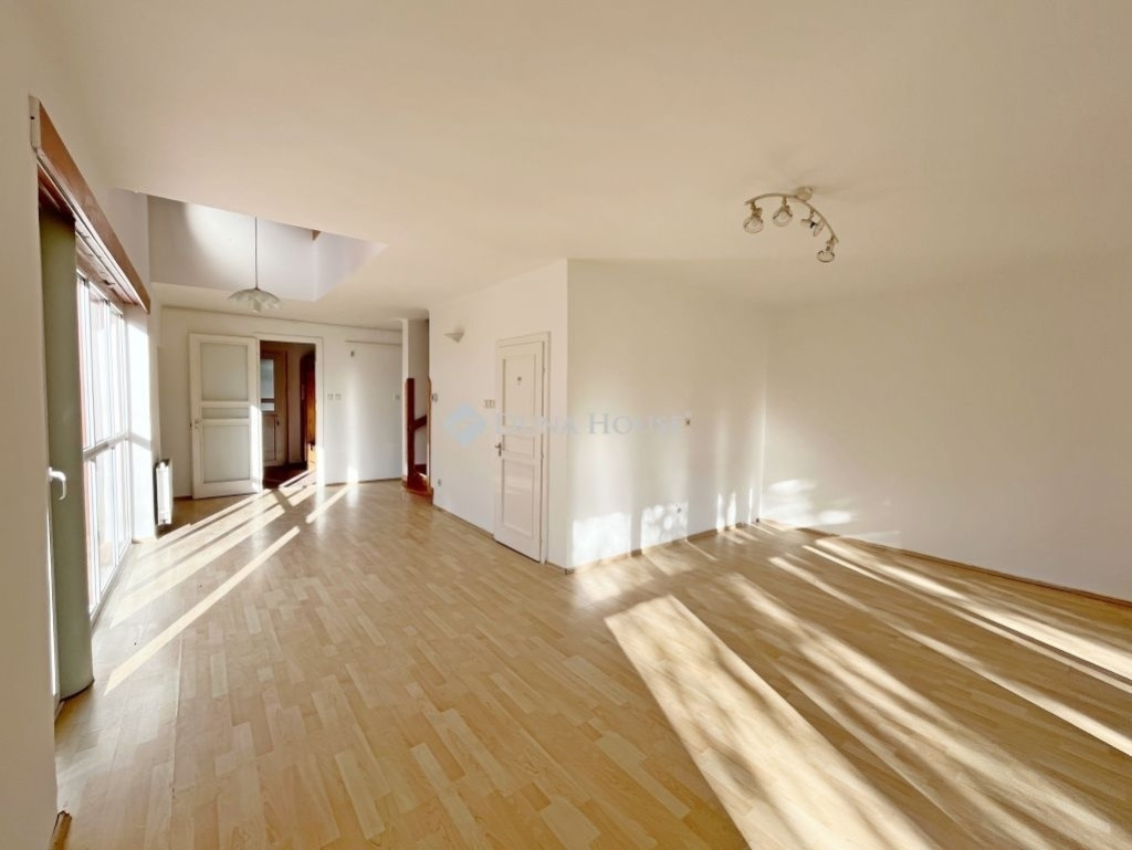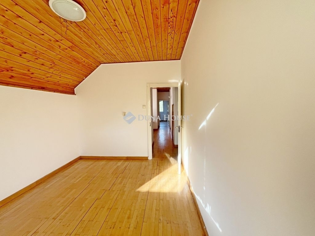 A nappali + hatszobás tágas, 180 m2-es ingatlan rendkívül jó elosztású. Az alsó szinten a nappali+étkező mellett helyet kapott egy szoba, konyha, kamra, háztartási helyiség, előszoba és egy fürdőszoba wc-vel. A lakás egy 430 m2-es kizárólagos használatú hangulatos telekrészen helyezkedik el, mely a nappaliból és a konyhából is megközelíthető.