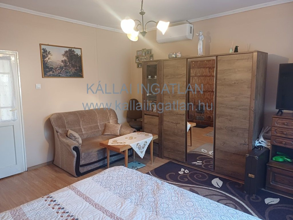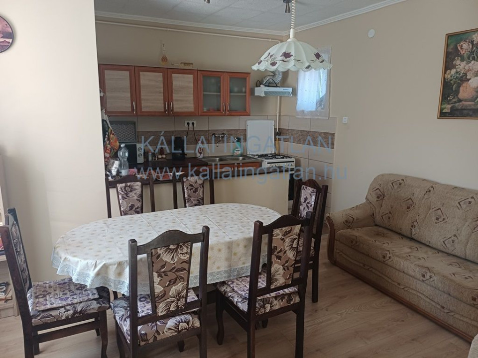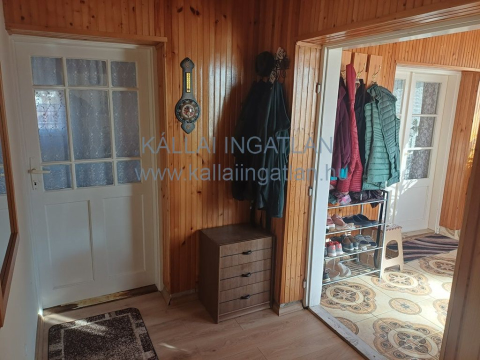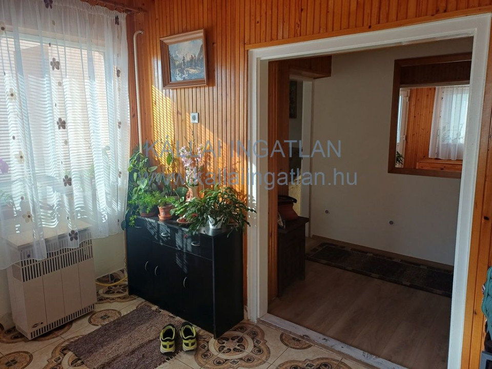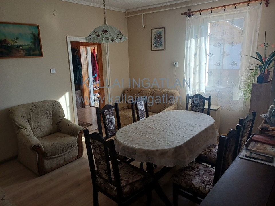 Elosztása: előszoba, kamra, konyha-étkező, 2 külön nyíló szoba, fürdőszoba, WC egy helyiségben. A házhoz csatlakozik 2 állásos fedett gépkocsibeálló, és egy téliesített nyári konyha.