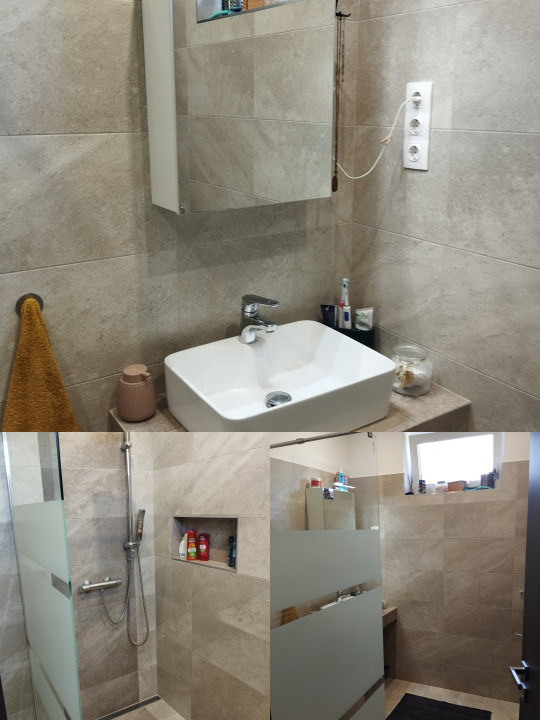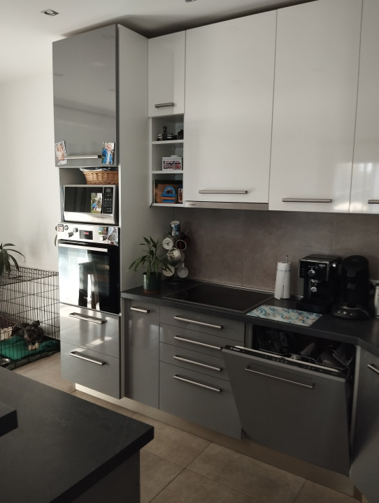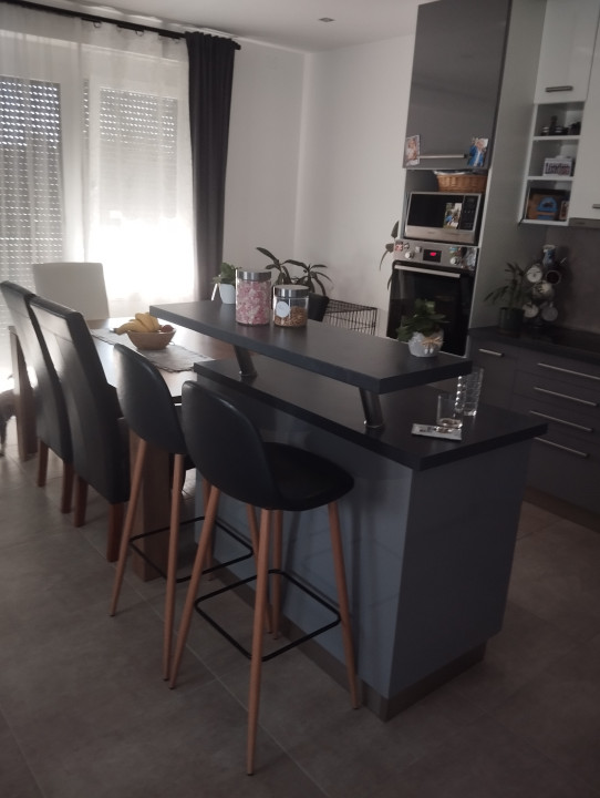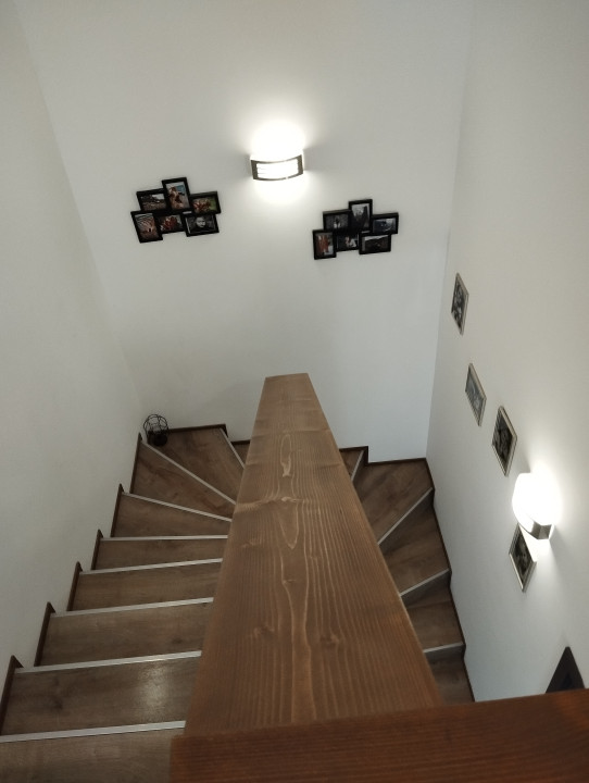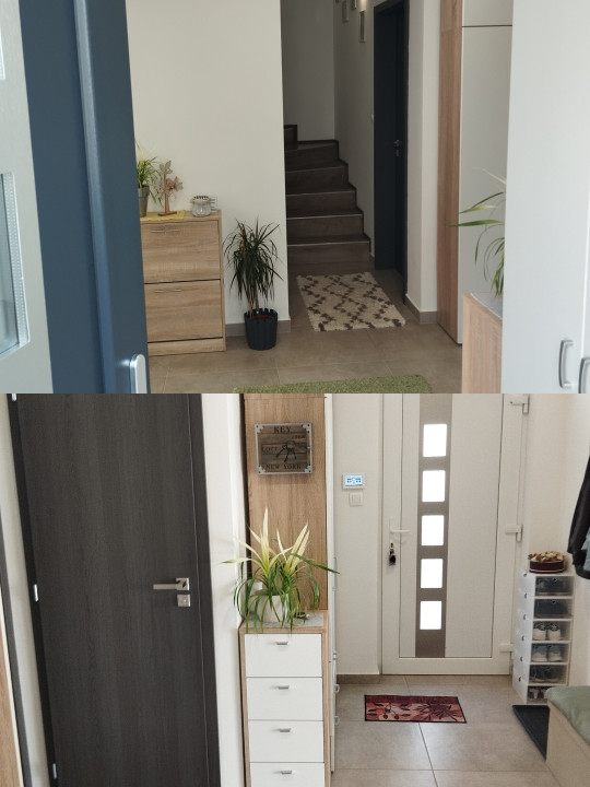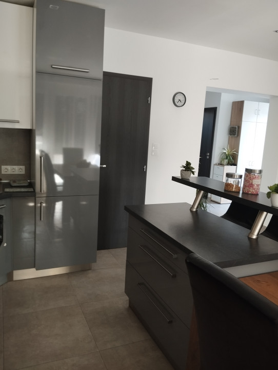 A földszinten a lakásba érve az előtérbe érünk, szemben a lépcsőfeljáróval, balra tárul elénk a 35 nm-es amerikai konyha-nappali, étkező, innen kétszárnyú ajtón keresztül a 15 nm-es teraszra jutunk. A konyha egyedileg készült asztalos által, konyhasziget is kialakításra került. A háztartási gépek: tűzhely, sütő, mosogatógép, szagelszívó Bosch márkájú, a beépített hűtő Vhirpool márkájú. A lépcső alatt kialakításra került egy jól funkcionáló kamra is. A lépcső mellett található egy hálószoba 9.2 nm és egy külön wc, és zuhanyzós modern fürdő, valamint egy háztartási helyiség, ahol a gépészet és a mosókonyha kapott helyet. Az emeleten egy 9,2 nm-es vendégszoba és két 16 nm-es szoba található. A két nagyszoba saját tervezésű gardróbbal leválasztott. Mindhárom szoba erkélyes, a kilátás lenyűgöző. Fent még egy hal és egy külön wc és egy zuhanyzós, kádas nagy fürdő került kialakításra.