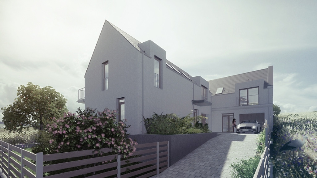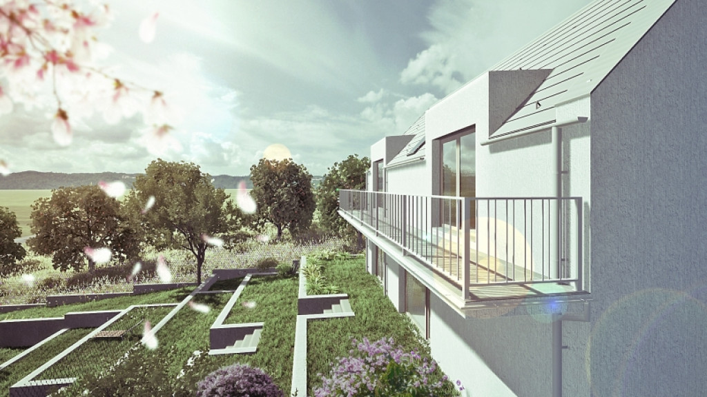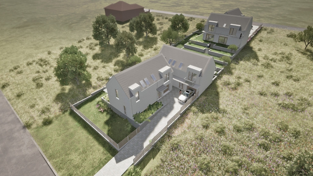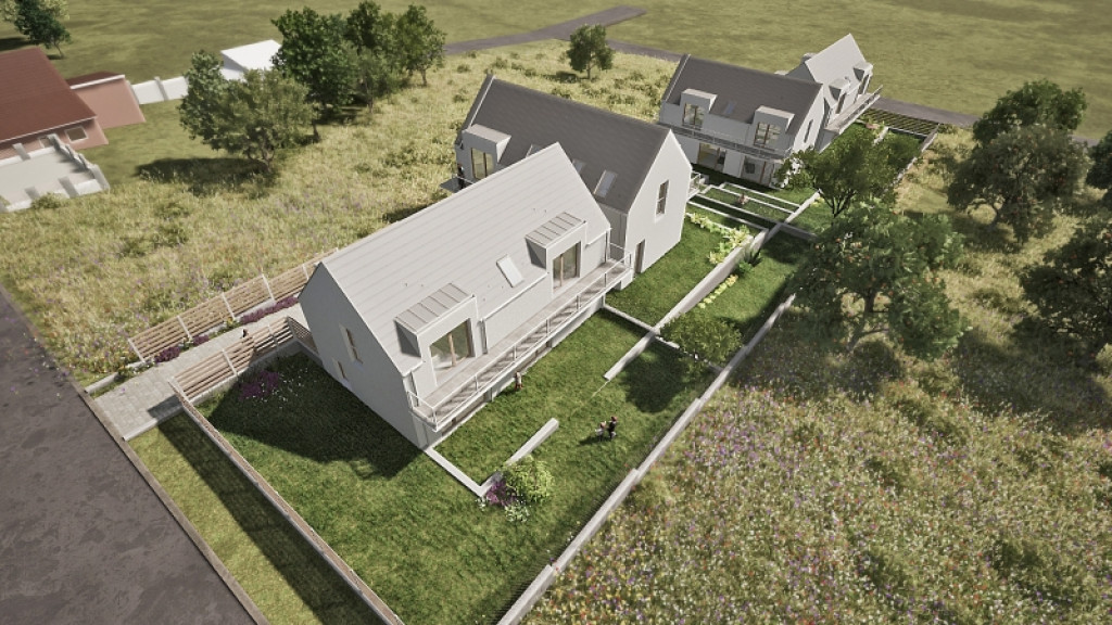 A kétszintes, amerikai- konyhás, 3 hálószobás, emeleten 2 fürdőszobás, földszinten wc+ zuhanyzós, nagy teraszos lakóegységek és a hozzá tartozó kertek is jól elkülönülnek egymástól az átgondolt tervezésnek köszönhetően! az épületek falai csak a külső tárolókkal kapcsolódnak egymáshoz, közös fal nincs! Mindegyik lakóegységhez tartozik egy 17 m2 -es garázs is.