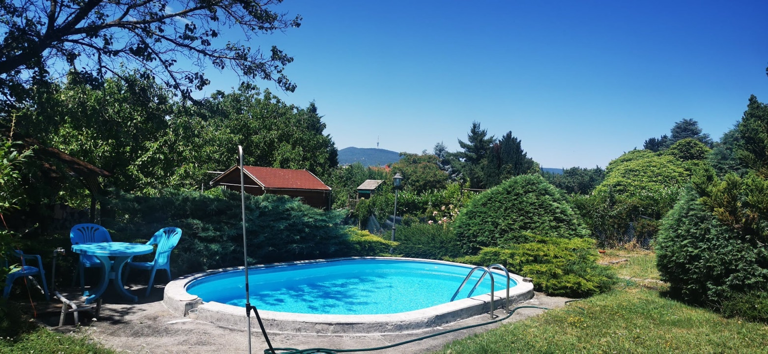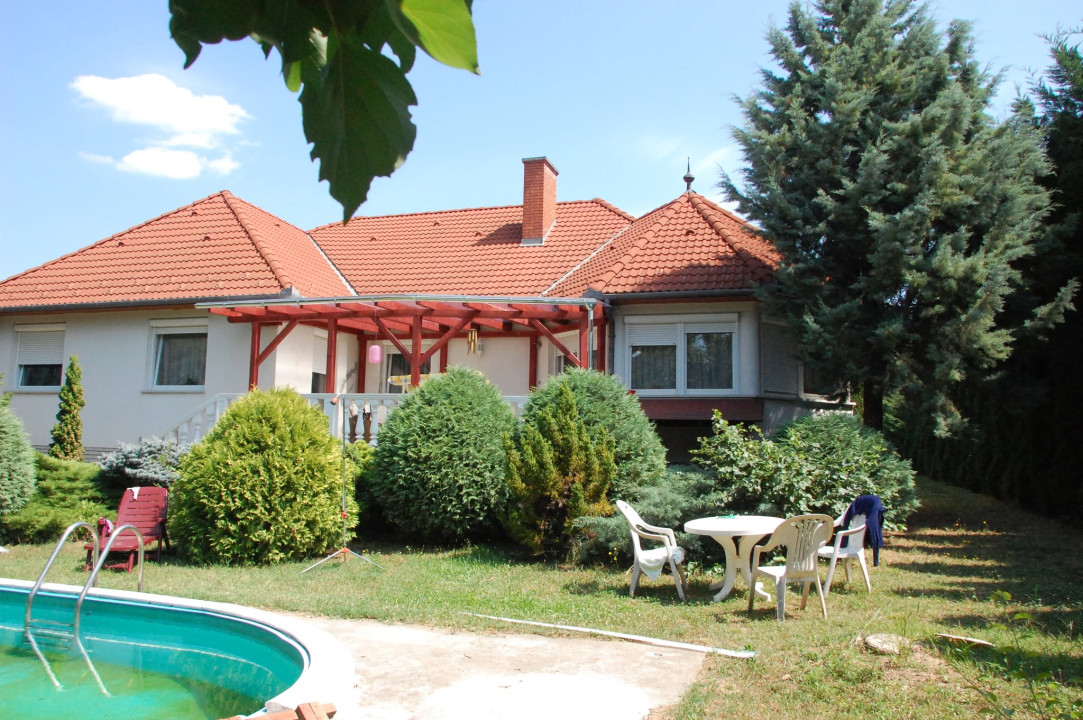 6,3 m X 3,5mx 1,5m medence, valamint van egy 20 m mély ásott kút is betongyűrűkkel bélelve, víz bevezetve a házig. Filagória és kerti szerszámtároló faház található még a parkosított területen ami be van ültetve min 20 db gyümölcsfával, szőlővel is.