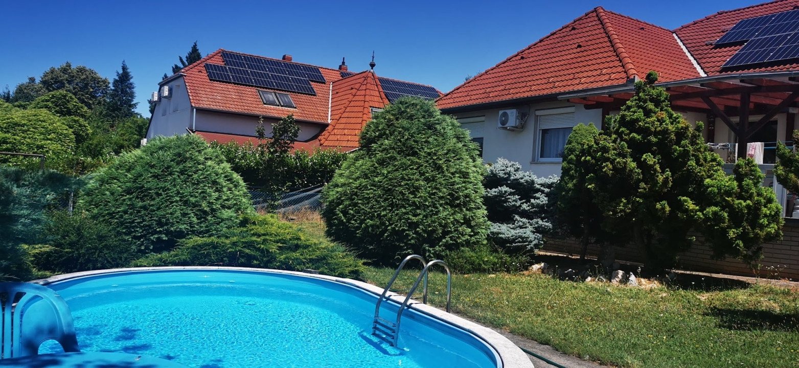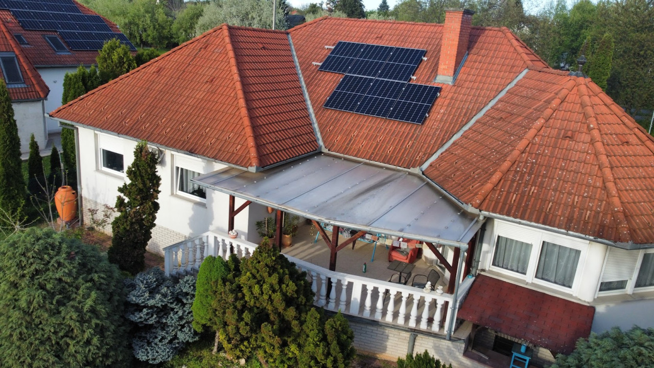 A ház el van látva 10KW-os napelemes rendszerrel, 10 éves szaldo elszámolással.