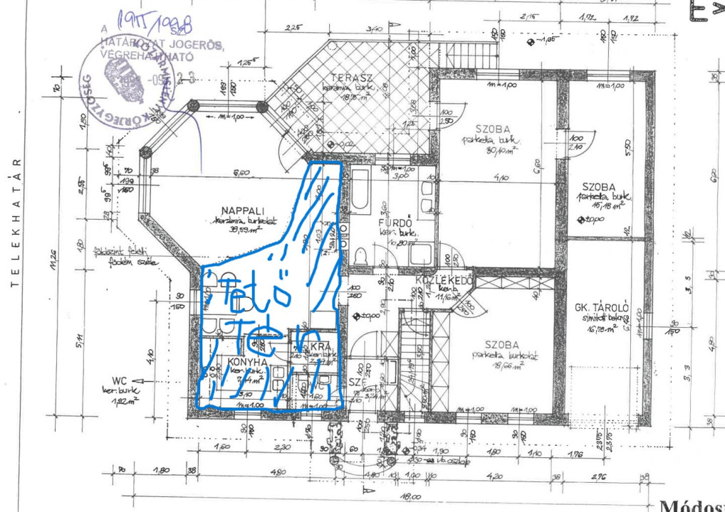 A konyha és nappali fölött van , szuterinben is ki lett alakítva plusz szoba.
