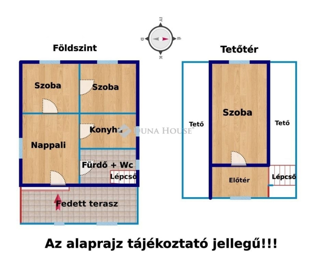 - tetőtéri szoba jelenleg a fürdőből érhető el, de külön bejárat is kialakítható