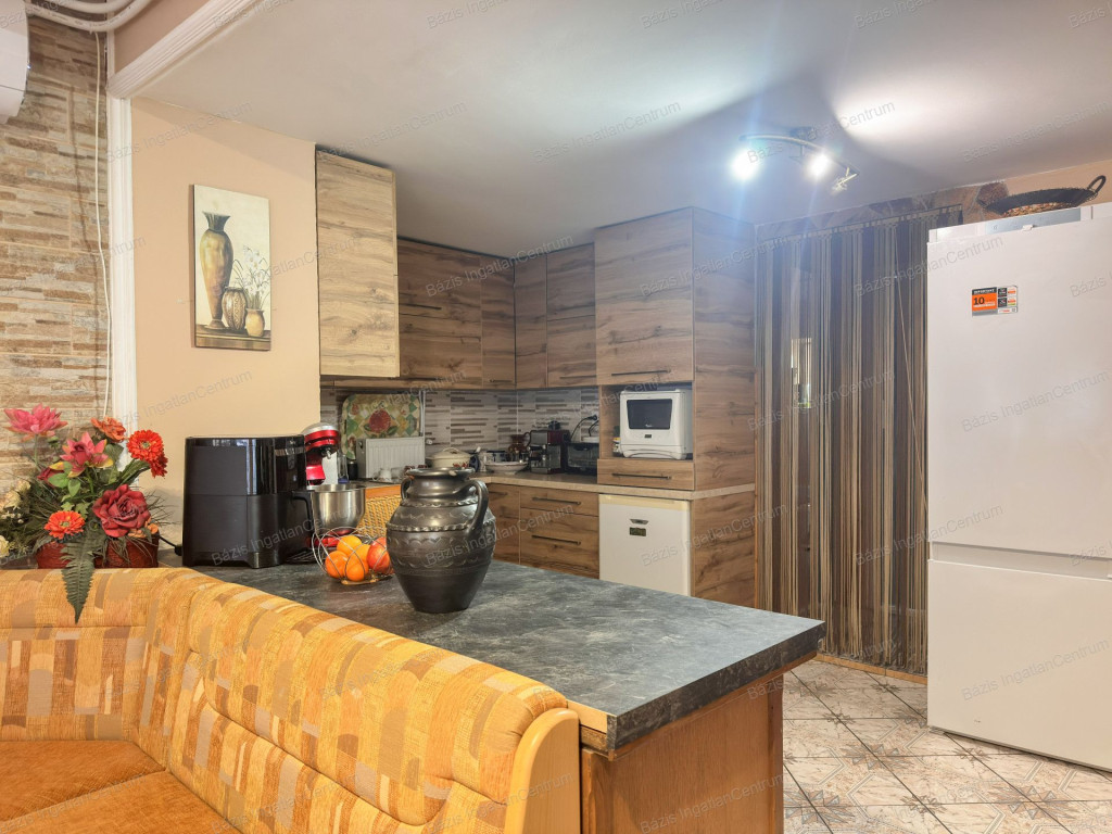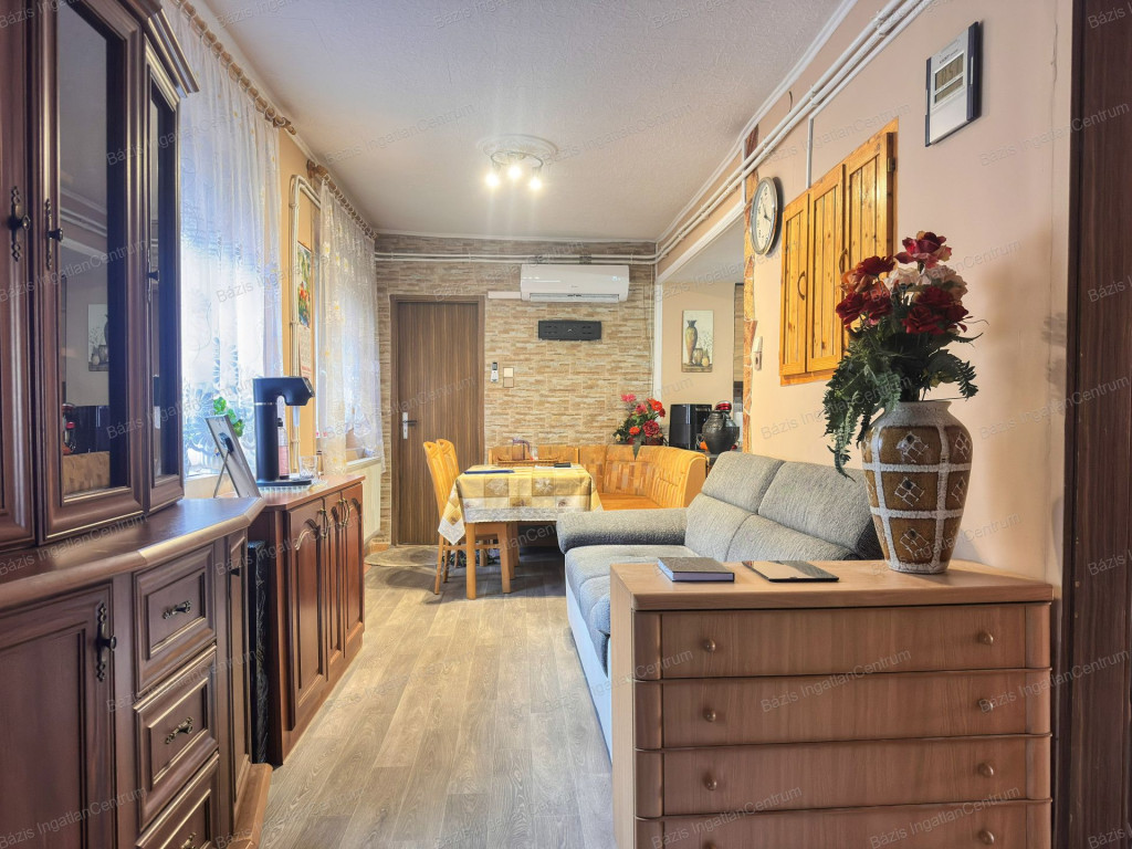Bács-Kiskun megye Kunbaja, felújított, 91 nm-es családi ház, teljes bútorzattal eladó. A vegyes falazatú ingatlanban található három szoba, nappali, konyha, fürdőszoba, WC, kazánház és kamra. A fűtésről vegyestüzelésű kazán, hűtés/fűtésről klíma gondoskodik. Az ingatlanba hőszigetelt nyílászárók kerültek beépítésre, amelyek redőnnyel ellátottak. A világos, jó elosztású családi ház járólapos, padlószőnyeges és laminált burkolattal van ellátva. Víz és villanyhálózat korszerűsítése megtörtént. Az ingatlanban található bútorok, konyha teljes gépészettel és a kamerarendszer az ár részét képezik. A ház egy 537 nm-es, gondozott telken található. Az ingatlanba víz és villany közmű kiépítésre került, gázcsonk a kapun belül helyezkedik el. Az udvaron garázs, kocsibeálló és több melléképület is rendelkezésre áll, amelyek tárolásra vagy egyéb célokra kiválóan hasznosíthatók. Vevő ügyfeleinket díjmentes hitel tanácsadással és teljes körű ügyintézéssel segítjük az ingatlan megvásárlásában. Bővebb információért keressen bizalommal!
