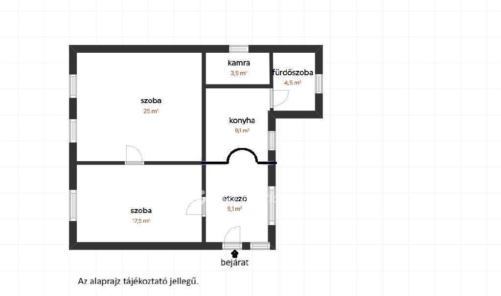 Az ingatlan vegyes falazatú, cseréptetős, karbantartott, összközműves. A házban két tágas szoba, étkező, modern konyha, kamra, és fürdőszoba kapott helyet. A szobák laminált padló burkolatúak, a többi helyiség járólap borítású. 5-6 éve felújították a fürdőszobát és a konyhát is, melyben új konyhabútor került beépítésre. Az ingatlan teljes berendezése a vételár részét képezi. A helyiségek fűtéséről gázkonvektorok gondoskodnak.