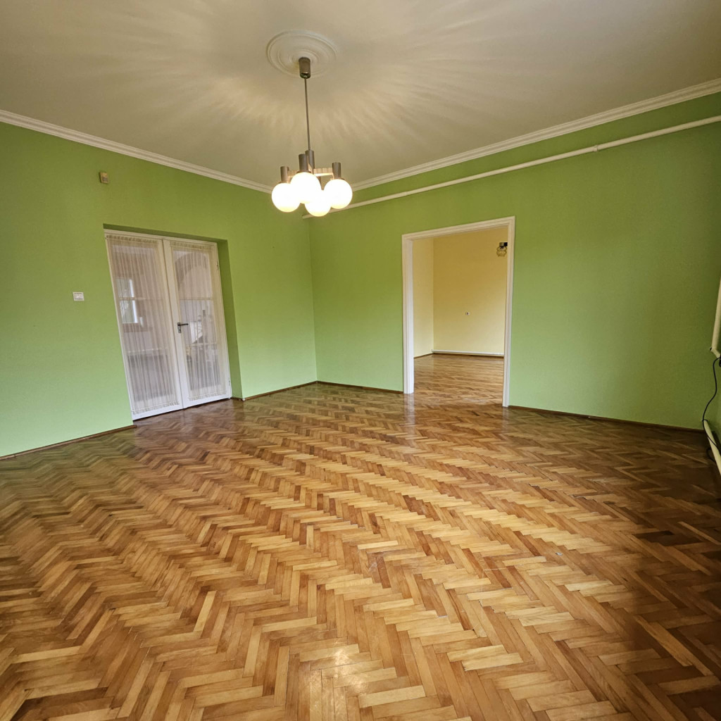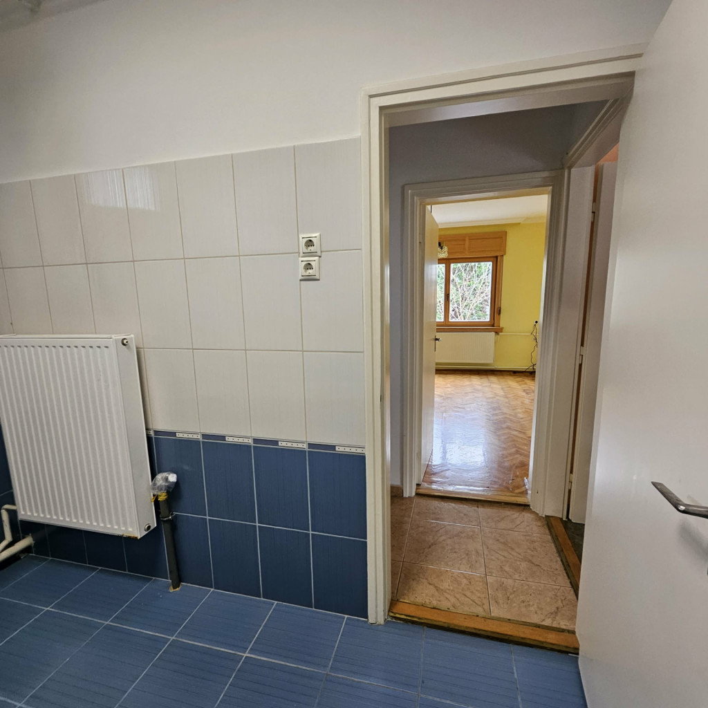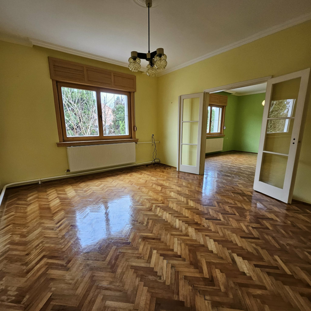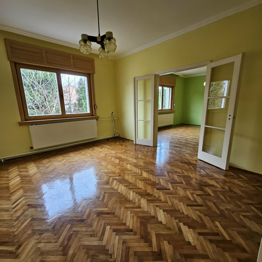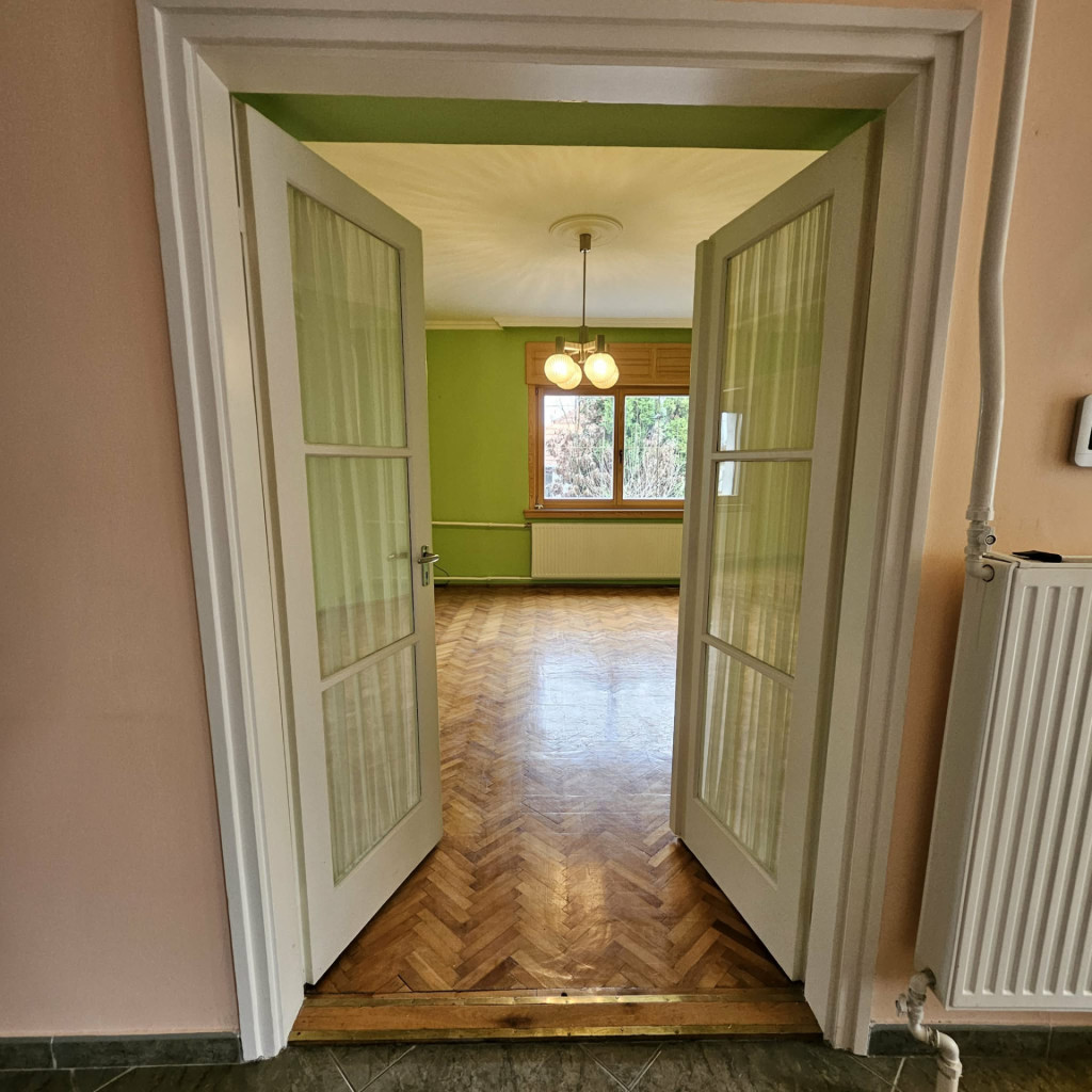 Az ingatlan elrendezése átgondolt és élhető: két tágas szoba, egy világos nappali, amelyből közvetlenül nyílik a konyha és a spájz, továbbá fürdőszoba, külön mellékhelyiség és egy előszoba biztosítja a kényelmet.
