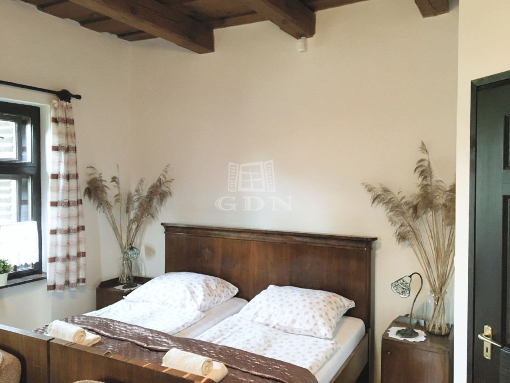A felújított házikó konyhával, két szobával, két fürdővel, tágas folyosóval, korhűen berendezett bútorzattal várja új lakóit.