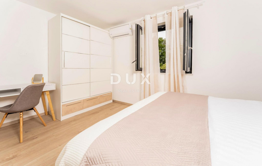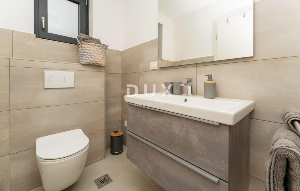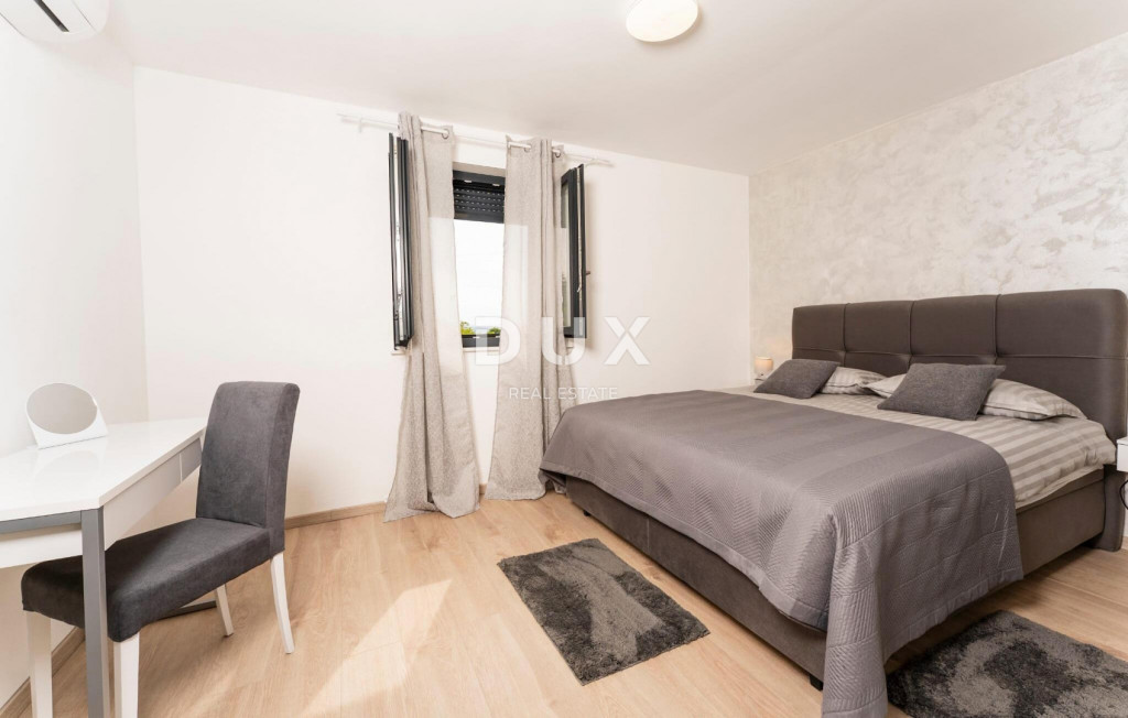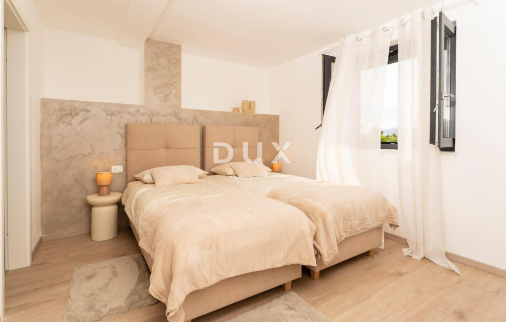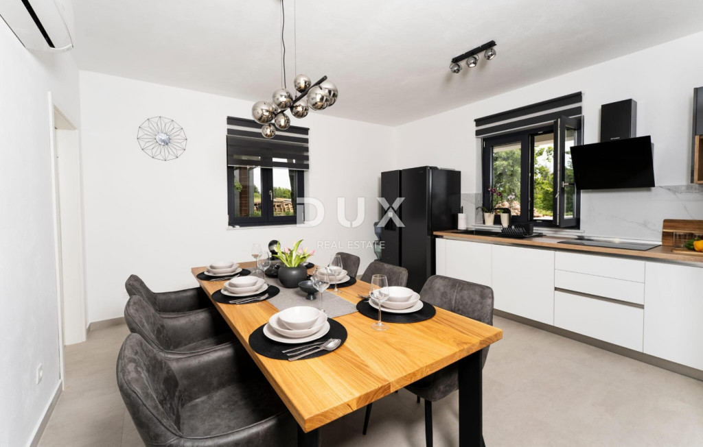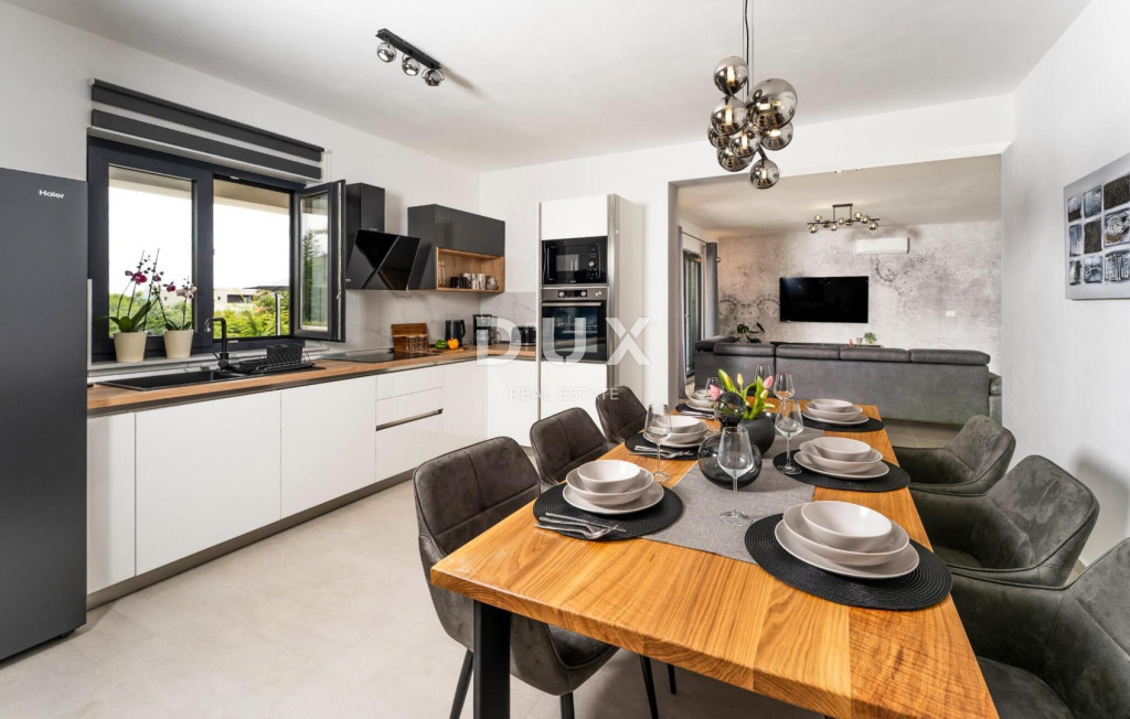 Isztria délkeleti partján, ahol a zöld dombok találkoznak a tengerrel, ahol a természet és az örökség egyesül, két hasonló méretű város található, amelyek különböző, de egymást kiegészítő karakterekkel rendelkeznek - Labin és Rabac. Labin festői városa egy 320 méter magas dombon emelkedik, mindössze négy kilométerre Rabac fehér kavicsos strandjaitól. A gazdag történelemmel és a régiót meghatározó bányászattal átszőtt Labin, amelyet rövid időre független köztársasággá kikiáltottak, ma az ellentmondások lenyűgöző városa; régi és új, történelem és jelen, turizmus és művészet. Labin város közelében, csendes faluban eladó egy medencés ház. Az ingatlant a kényelmes elhelyezkedés mellett az időtlen építészeti megjelenés és a belső tér térszervezése is jellemzi. A nappali elvileg két részből áll; lakó- és hálóterületek. A földszinten található nappali egy nappaliból, étkezőből és egy fedett teraszra nyíló nyitott konyhából, egy háztartási helyiségből és egy vendég WC-ből áll. A hálószoba az emeleten található, és három hálószobából áll, saját fürdőszobával, valamint egy folyosóval, ahonnan egy terasz nyílik, ahonnan panorámás kilátás nyílik a környékre. Fűtési és hűtési célokra klímaberendezések és a nappaliban szilárd tüzelésű/pellet kályha biztosított. A parkosított kertet úszómedence egészíti ki napozórésszel. Ez a csendes faluban található ingatlan ideális lehetőség egy nyugodt családi életre, valamint turisztikai bérbeadás céljára befektetésnek is.