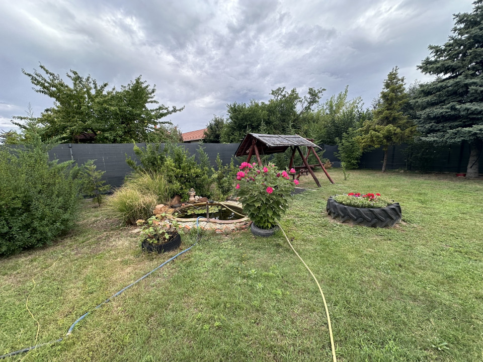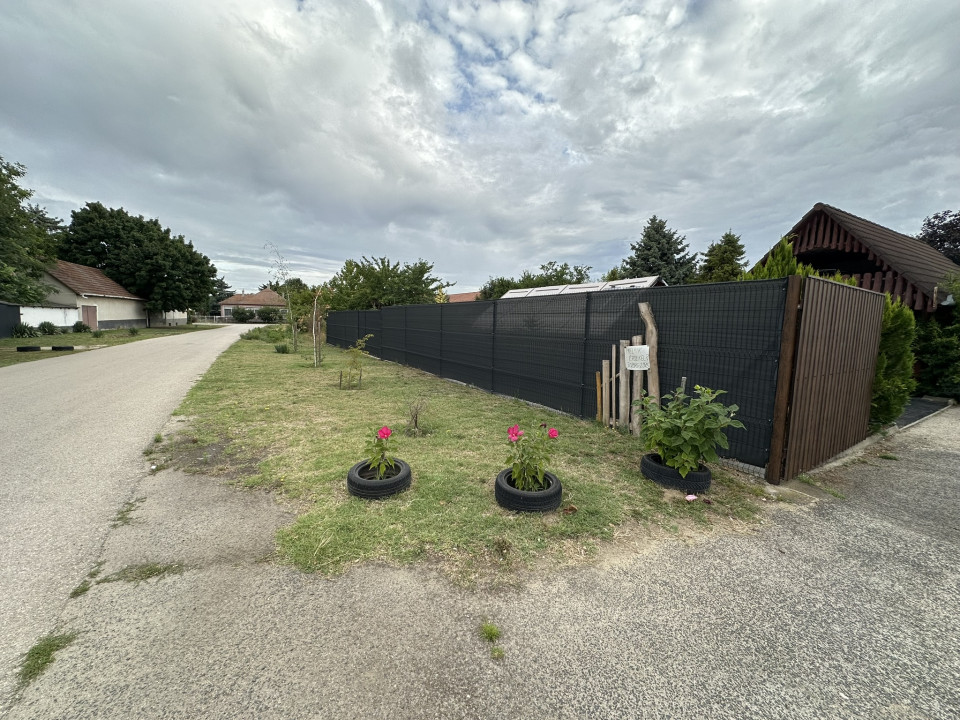 A sarki telken elhelyezkedő, 130 m² alapterületű ház egy 917 m²-es, gondozott, parkosított telken áll. A telket 2 méter magas téglakerítés és 3D táblás, árnyékolóval ellátott drótkerítés veszi körül, ami biztosítja a teljes intimitást és biztonságot.