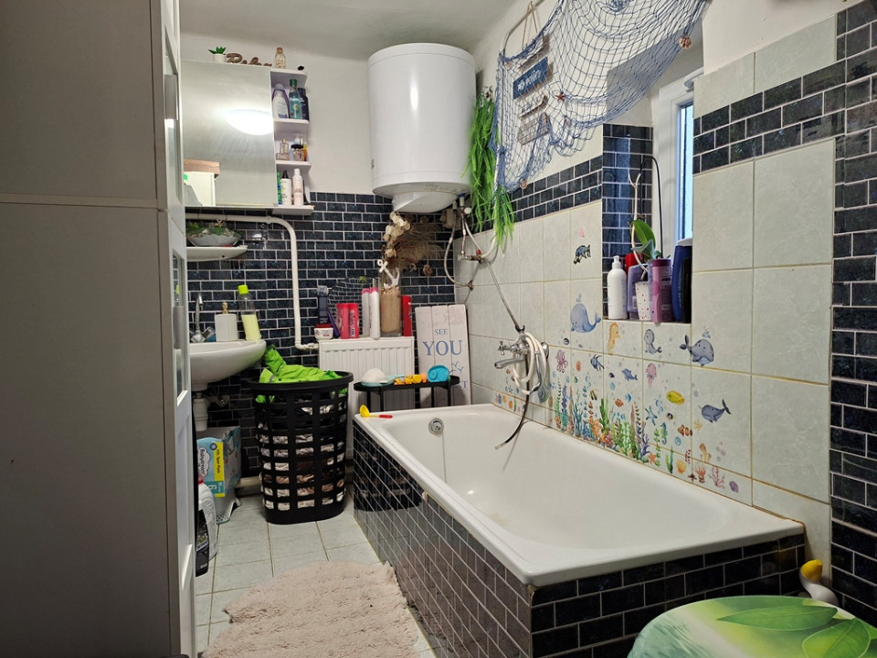 A ház vegyestüzelésű kazánról, radiátor hőleadókkal fűthető, mely kis költségből hihetelen meleget ad, köszönve a vastag vályogfalaknak és az új nyílászáróknak. Az otthon kellemes hőmérsékletét hűtő-fűtő klíma is biztosítja. A melegvizet éjszakai áramról működő villanybojler adja. Az egyik hálószobát laminált padló burkolja, az élettér többi része járólapot kapott. A hangulatos udvar részben parkosított, halastó, kis játszótér és kerti kiülő található.