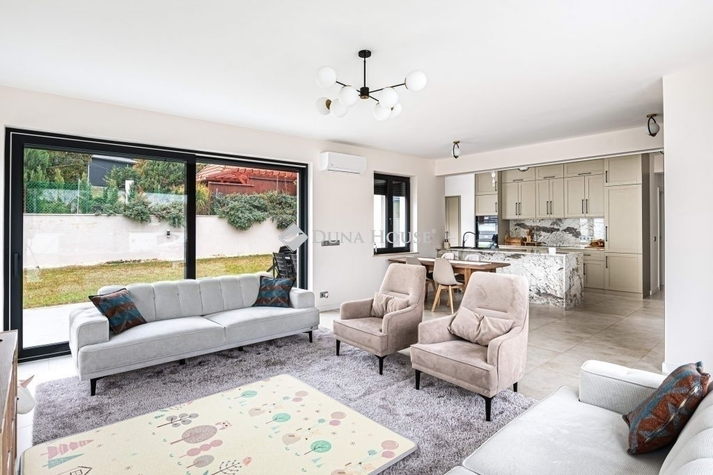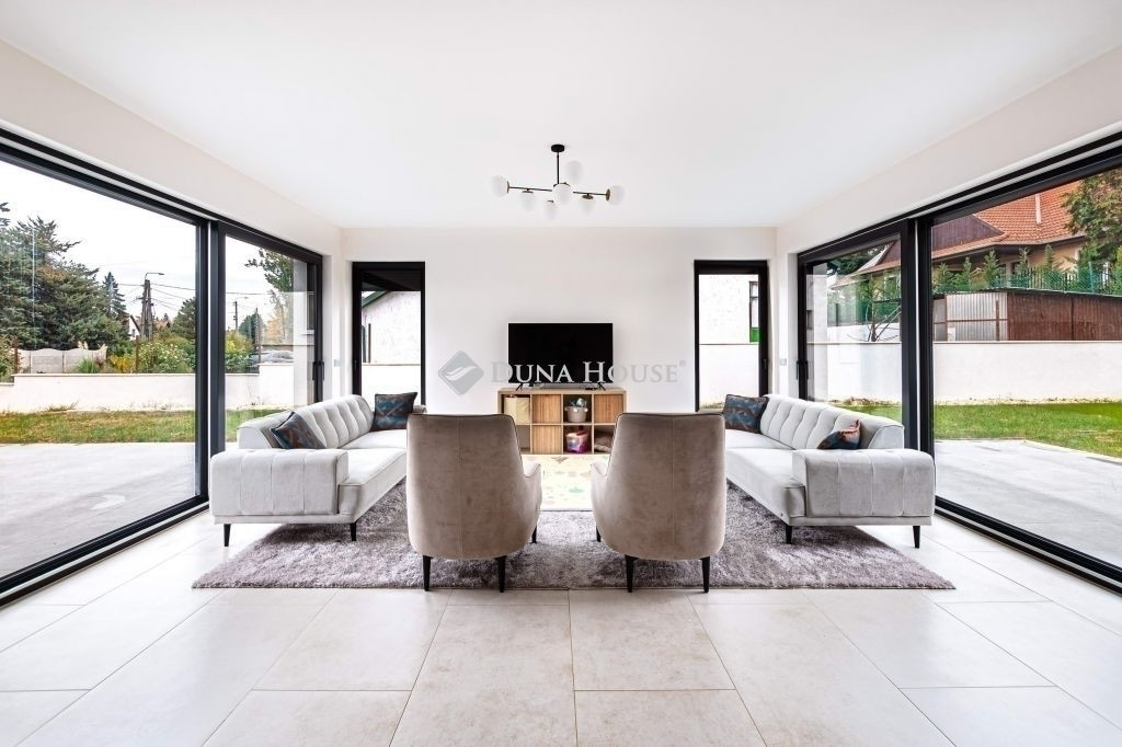 Kivételes lehetőség egy minőségi kivitelezésű, modern, nettó 120 m²-es otthon, amely 1059 m²-es, rendezett telken fekszik.
