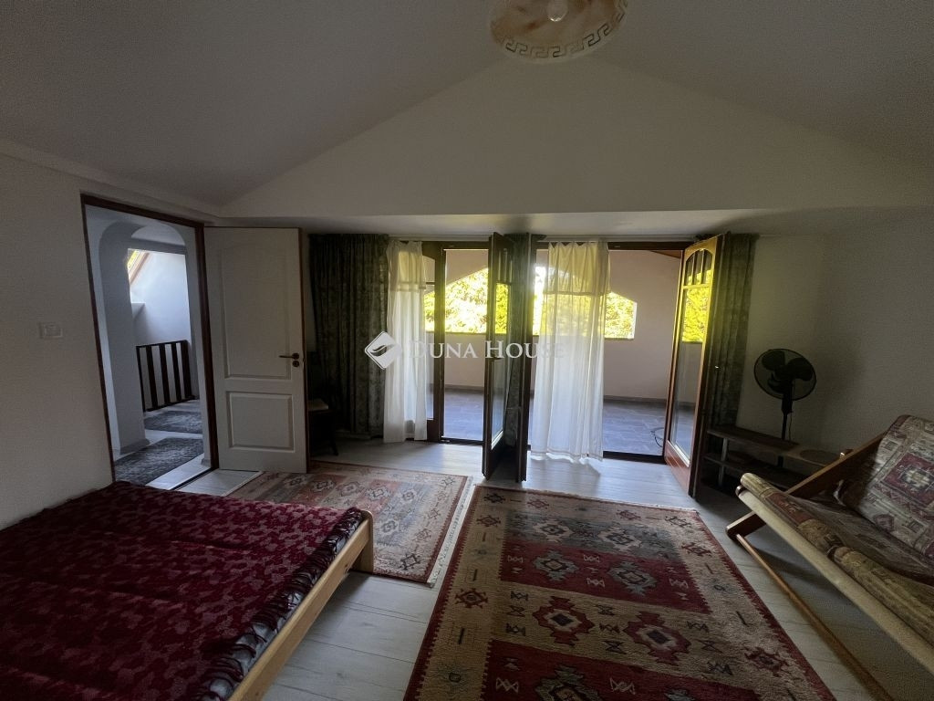 Leányfalu központjától és a strandfürdőtől mindössze 700 méterre, mégis teljes elszigeteltségben, madárcsicsergéssel és buja növényzettel körülölelve található ez a 122 m²-es, tornácos, kétlakrészes téglaház, amely 2019-ben teljeskörű felújításon esett át.
