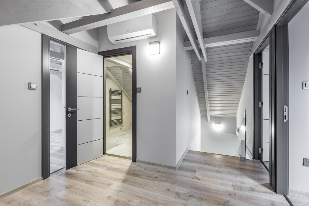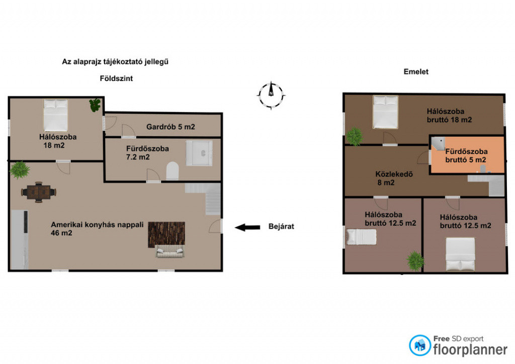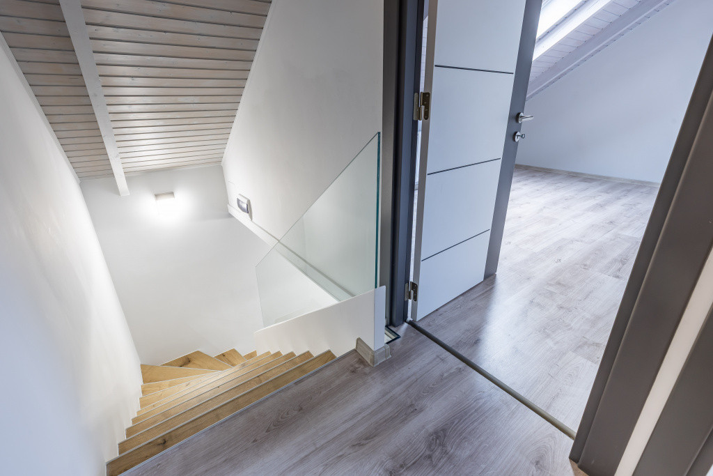 A tetőtér jól használható belmagassággal rendelkezik, itt 3 külön nyíló szoba kapott helyet, így ideális hálószobáknak, dolgozószobának vagy akár gyerekszobáknak is. A tetőtéri helyiségeket tetősík ablakok világítják meg, a hangulat kifejezetten otthonos. A szinthez egy modern, walk-in zuhanyzós fürdőszoba is tartozik.