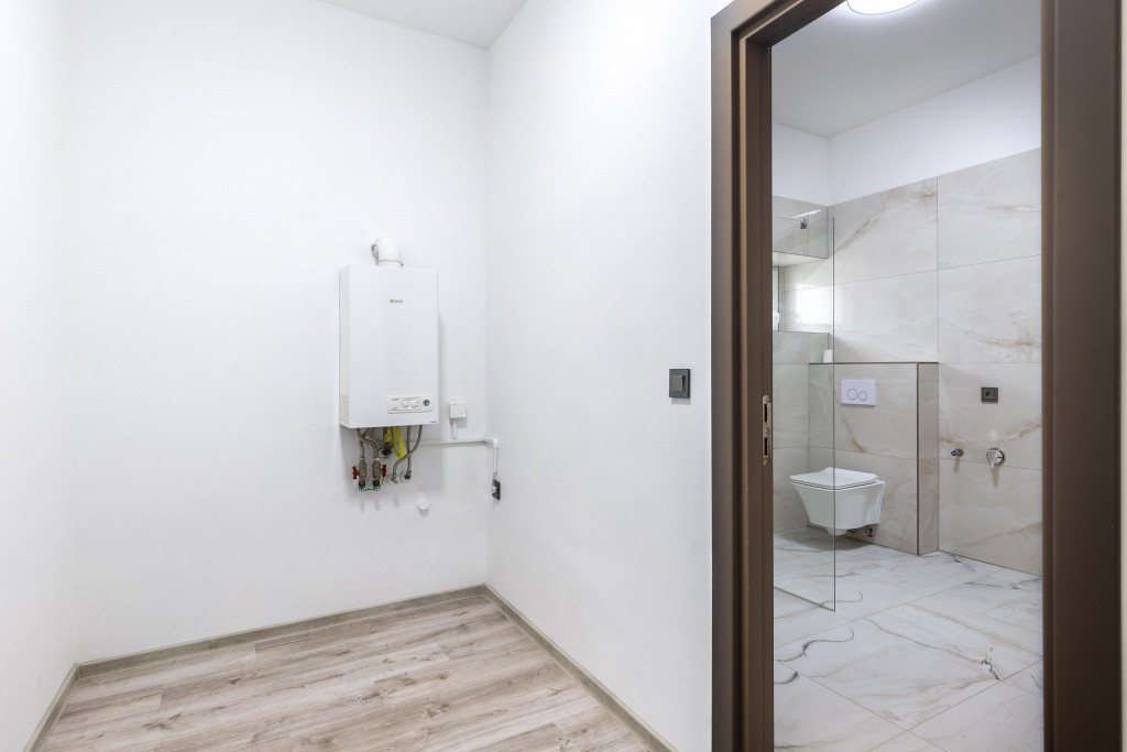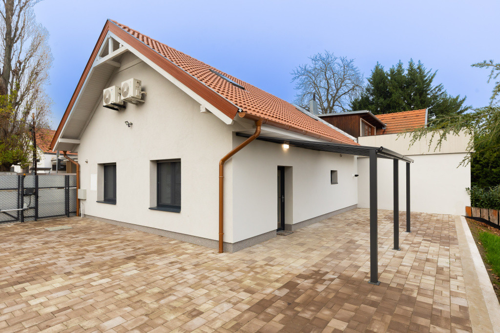 A ház fűtéséről kondenzációs kazán gondoskodik, kiegészítve klímaberendezéssel, melyek nyáron hűtést, átmeneti időszakban pedig fűtést biztosítanak. A burkolatok, nyílászárók, gépészet és szaniterek mind a felújítás részeként kerültek beépítésre.