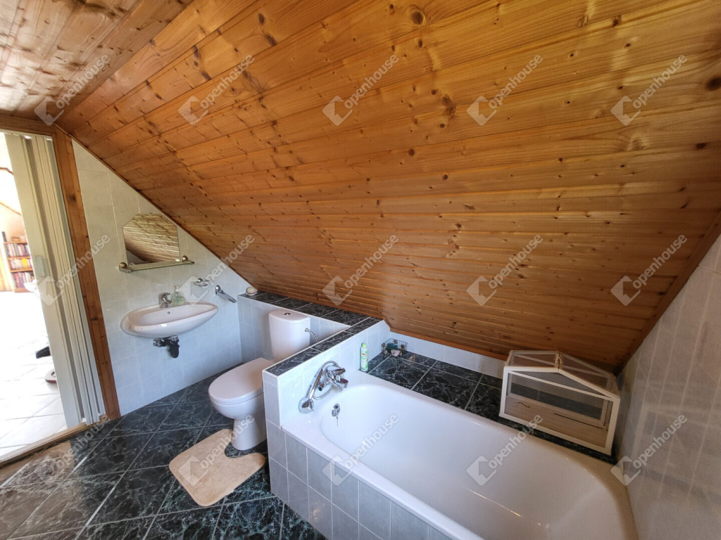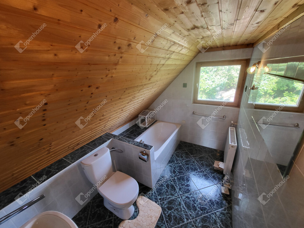 Ezen a szinten található továbbá a szülői hálószoba, egy fürdőszoba és külön WC is. A nappaliból kilépve tágas panorámás terasz vár, ahol a természet látványa minden évszakban más-más arcát mutatja. Reggel a harmat és a madarak, este a csillagfény és a nyugalom veszi körül az embert.