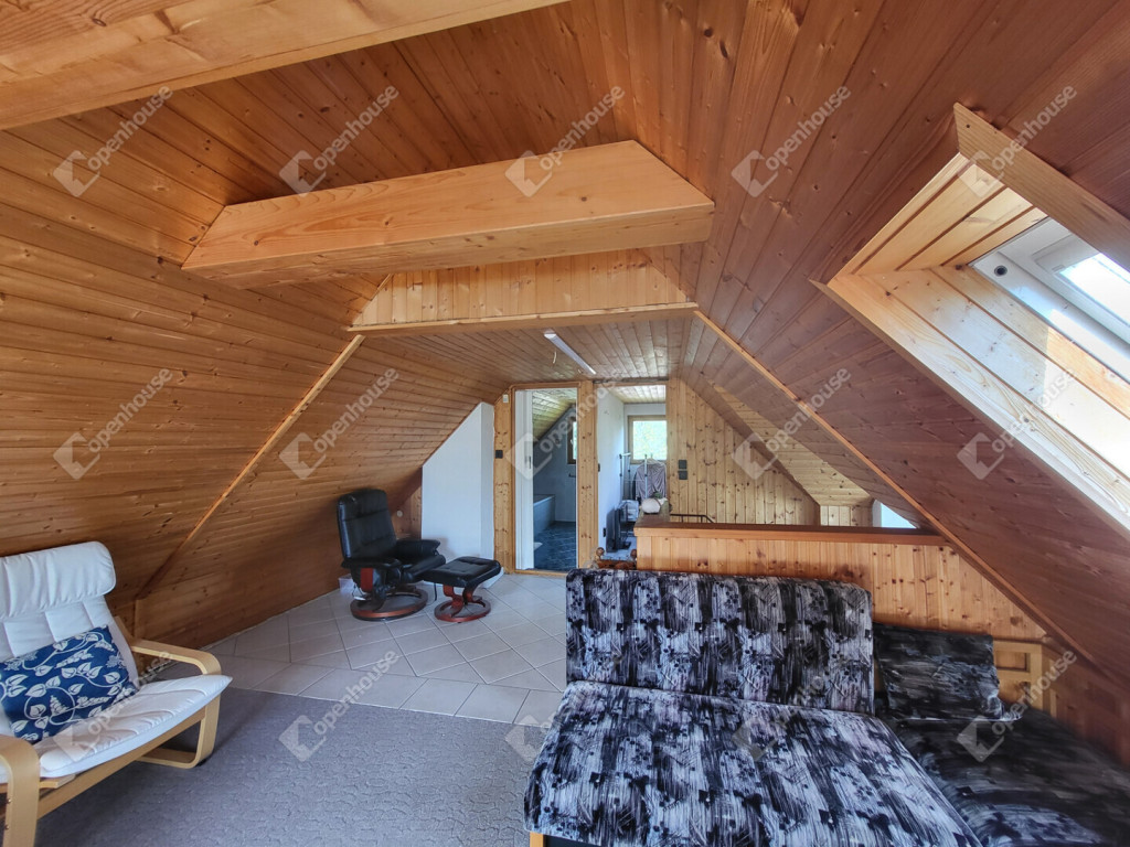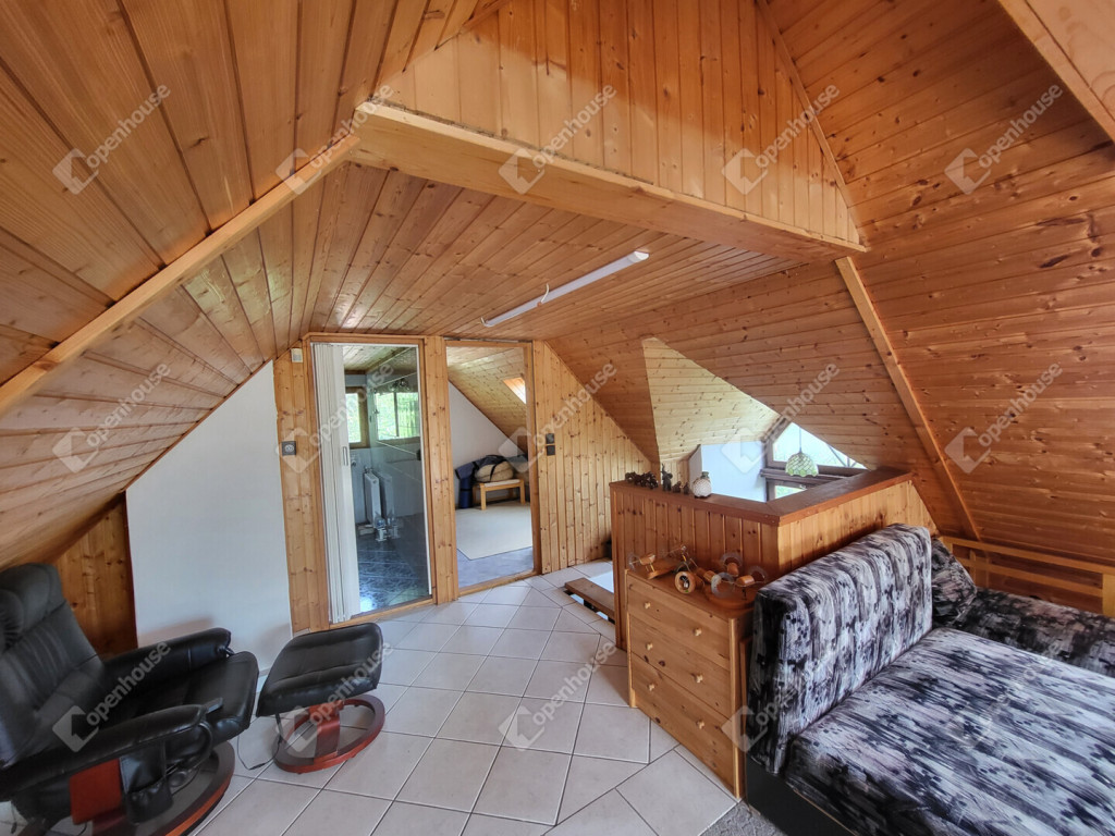 A tetőtér három hangulatos, lambériázott helyiségből áll, melyek mindegyike panorámás. Itt található egy tágas nappali, egy hálószoba és egy fürdőszoba is. A nappali igény szerint akár külön nyíló szobává alakítható.