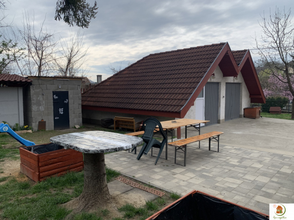 A házhoz tartozik egy kétállásos garázs és egy kis melléképület is. A kertben gyümölcsfák, kút.