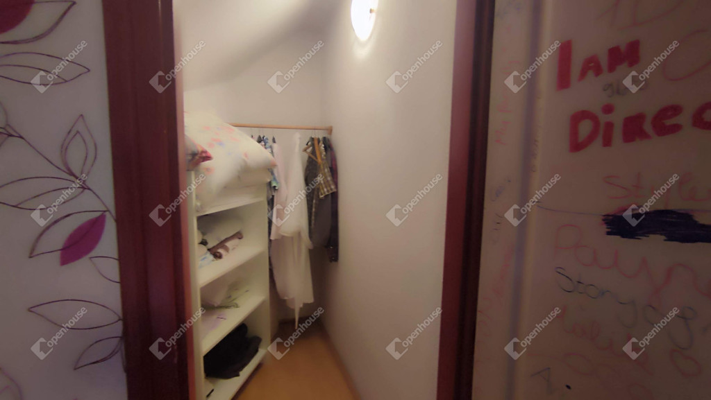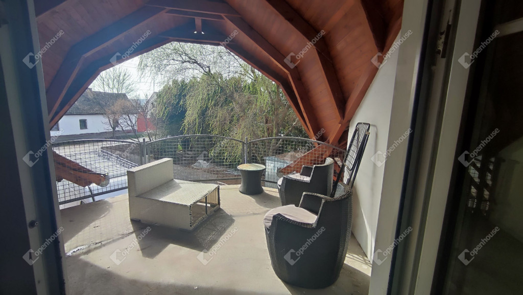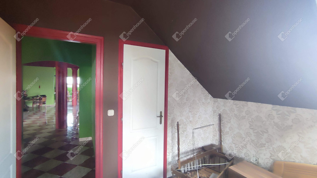 Az emeleten került kialakításra a privát lakrész. Négy hálószobával, melyből háromhoz gardrób szoba tartozik. Amerikai konyha, nagy nappali, kettő fürdőszoba, dupla WC.