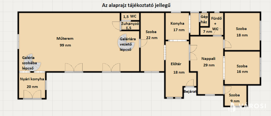 Az ingatlan remek választás olyan embernek, akinek szüksége van alkotói térre vagy a munkája miatt hasznosítani tudja a közel 120 nm nagyságú művészi részét a háznak, de akár befektetési célra is kiváló választás. A ház lakrésze 140 nm hasznos alapterületű, itt akár 4 szoba, 1 nappali, 1 előtér + étkező, 1 konyha és 1 fürdő+ WC található, jelenleg ez is egyedi stílusba van berendezve, de az elosztása adott, abból könnyedén kialakítható egy nagyobb család számára praktikus lakrész.