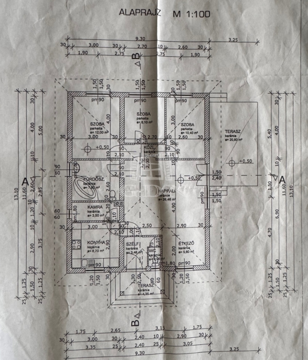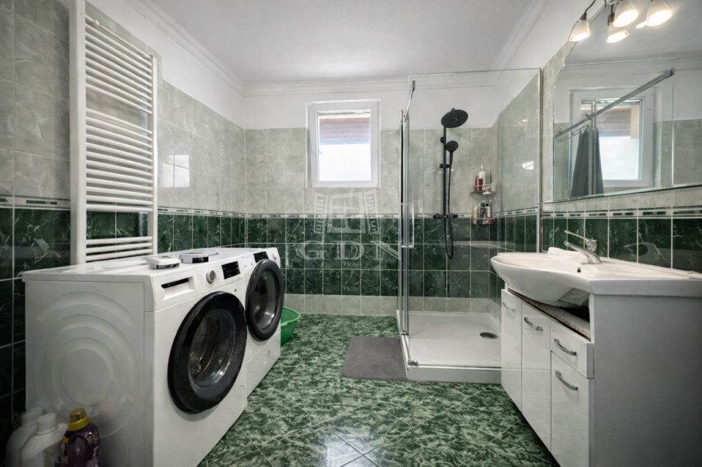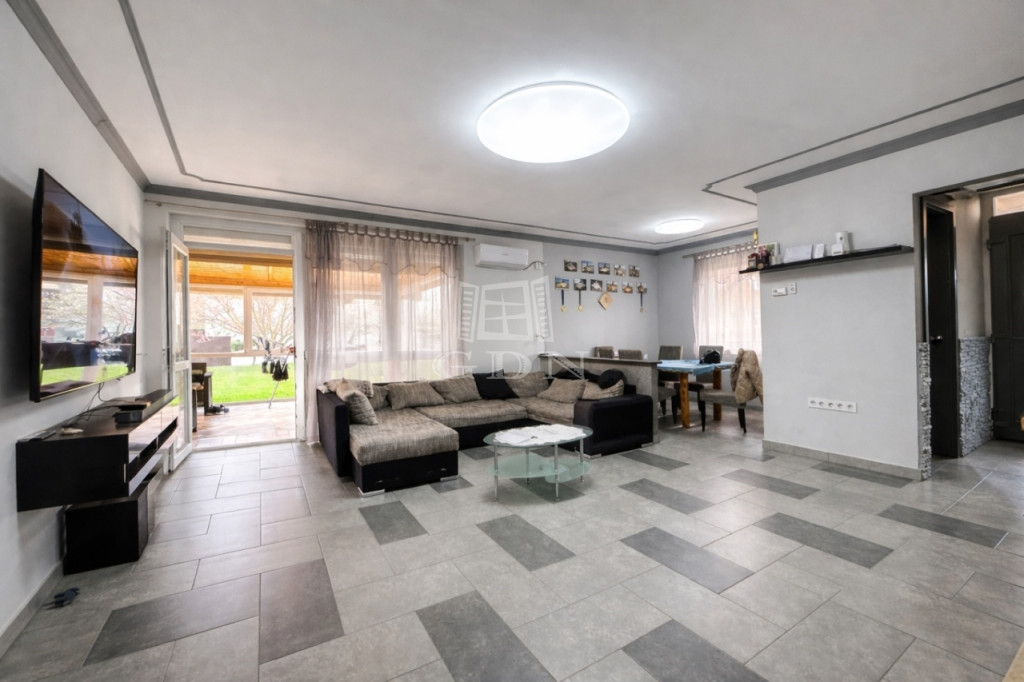 Elosztását tekintve 115m2 hasznos alapterületű. Előszoba, vendég WC, nappali-étkező, konyha, kamra, 3 hálószoba és beépített terasz lett kialakítva.