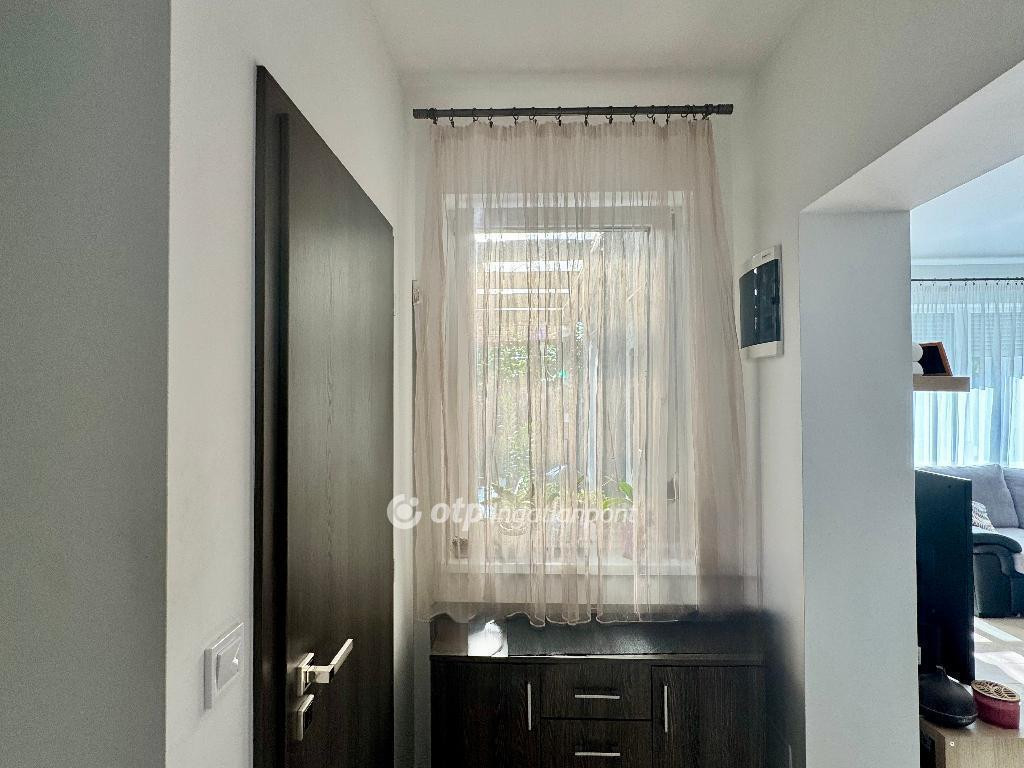 A belső elrendezés az átláthatóságra és életszerű használatra épül: a tágas, amerikai konyhás nappali köré szerveződnek a helyiségek; három félszoba, külön előszoba, spájz és gépészeti helyiség, tágas fürdőszoba és külön WC adja a mindennapok kényelmét. A ház előtt fedett, térkövezett beálló két autót fogad, emellett egy körülbelül 15 négyzetméteres, jelenleg tárolóként használt garázs is rendelkezésre áll. A kert kifejezetten könnyen karbantartható, teljesen körbekerített és praktikusan használható.