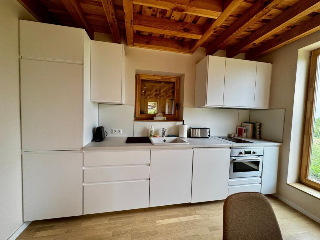 A konyha teljesen felszerelt, a fürdőszobában küszöb nélküli walk-in zuhany, Grohe szaniterek és motoros tetőablak található.
