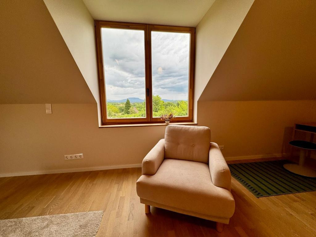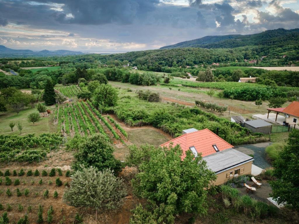 A panorámás tetőteraszról a Balaton látványa és a tanúhegyek nyugalma tárul elénk.