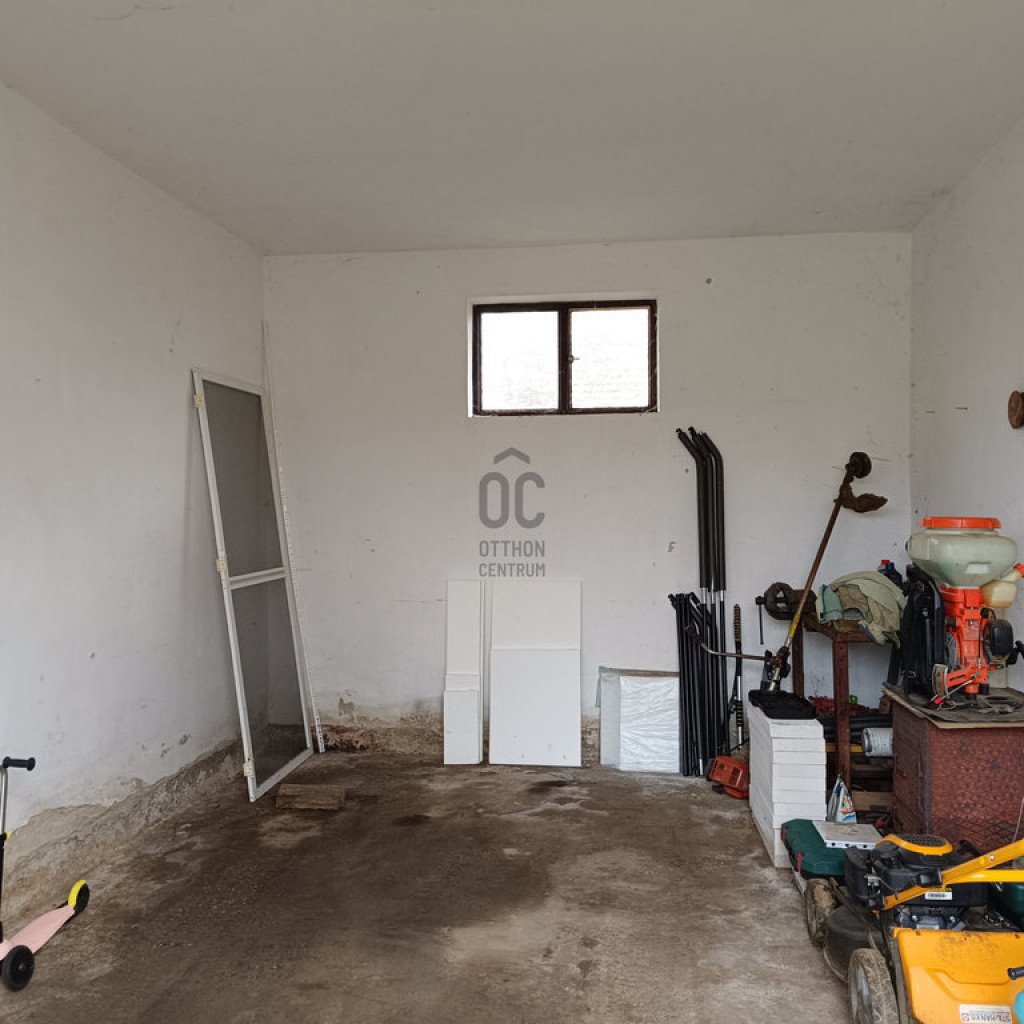 A ház folytatásában garázs /18 m2/, nyári konyha / 13,5 m2/, amely alatt pince is megtalálható. A nyári konyhában víz, villany, gáz is be van vezetve.