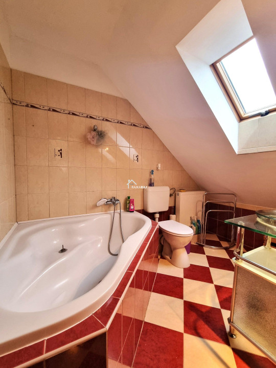 AZ EMELET HELYISÉGEI: 3 szoba ( 9 m2 + 9 m2 + 15 m2) , kádas fürdőszoba egy helyiségben a wc-vel (5 m2), közlekedő.