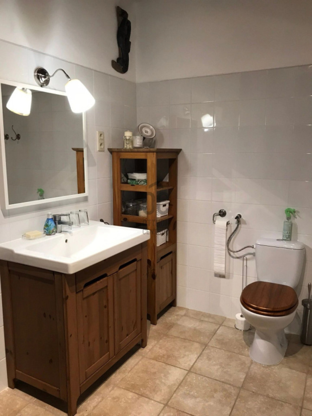 Földszint: előszoba, tágas hálószoba, fürdőszoba káddal és WC-vel, hangulatos lépcsőház olvasósarokkal, továbbhaladva nagy nappali, teljesen felszerelt konyha és étkező kert és teraszkapcsolattal.
