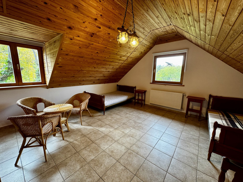 Emelet: közlekedő további alvóhellyel, zuhanyzós fürdőszoba WC-vel, három tágas hálószoba (egy külön alvósarokkal – ideális nagycsaládosoknak).