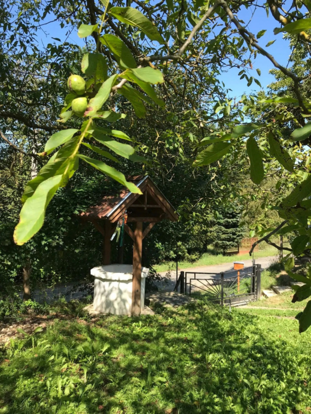 A kertben ásott kút, és kerti tároló található. A telekhez saját rét, és erdő tartozik, több mint 1 hektáron – tele akácokkal és gyümölcsfákkal. A dombtetőről csodálatos panoráma nyílik a völgyre.