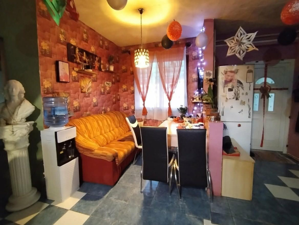 A telken található egy 93 nm-es, téglából és blokkból épült családi ház, amely 2002-ben teljes körű felújításon esett át. A felújítás során megtörtént a tetőcsere, a villamoshálózat korszerűsítése, a fürdőszoba felújítása, a nyílászárók cseréje, a fűtés korszerűsítése, a hideg- és melegburkolatok cseréje, valamint a külső homlokzat szigetelése és színezése. Elrendezése: 3 szoba, nappali, konyha, előszoba, kamra, fürdőszoba és külön WC. A ház részben alápincézett, klímával felszerelt, fűtése vegyestüzelésű kazánnal és gázcirkóval is megoldható, valamint teljes közművel rendelkezik. Az ingatlan részben bútorozva kerül értékesítésre.