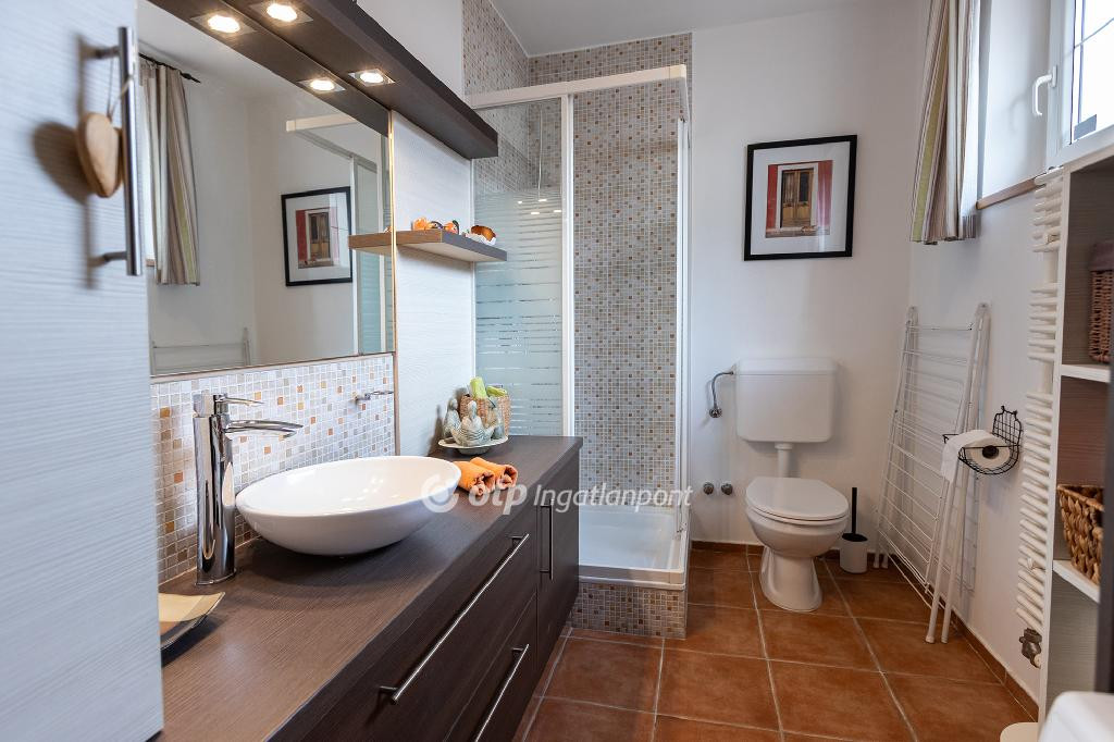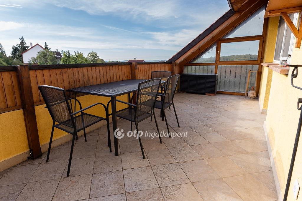 Három kényelmes hálószoba és három fürdőszoba biztosítja a privát kényelmet, míg az emeleti 20 m2-es panoráma teraszról a Balatonra egészen Tihanyig nyílik a kilátás a naplementék innen valóban páratlan élményt nyújtanak.