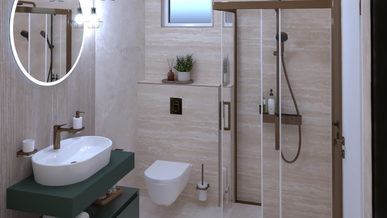 A feltöltött képek között a fürdőszobákról látványtervek is megtalálhatók, amelyek segítenek elképzelni a kész, modern enteriőrt és a tervezett burkolatokat, szanitereket.