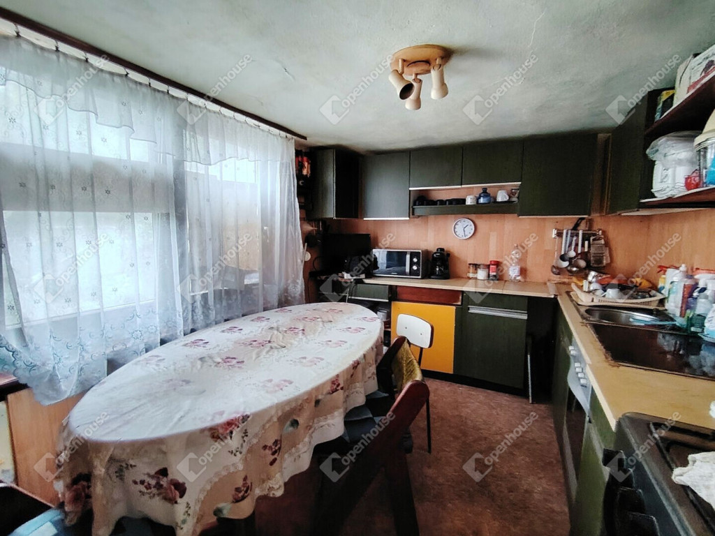 A 65 m²-es ház egy 604 m²-es telken fekszik, a domboldal alján, ahonnan szép panoráma nyílik a falura.