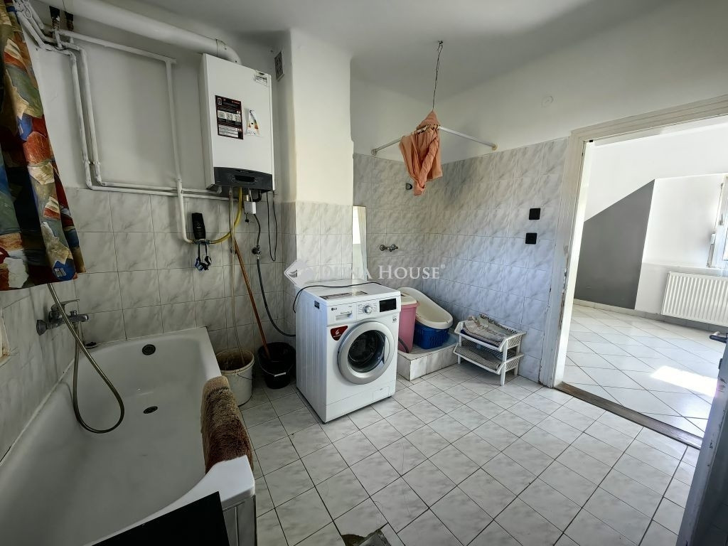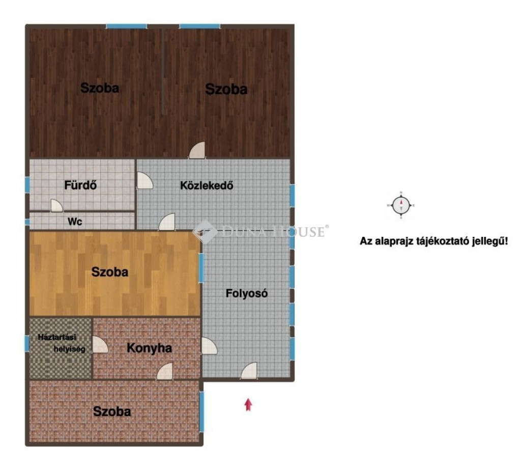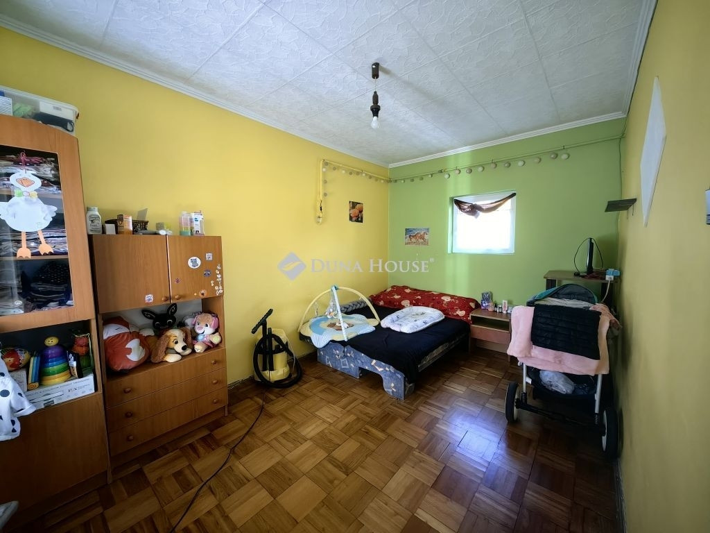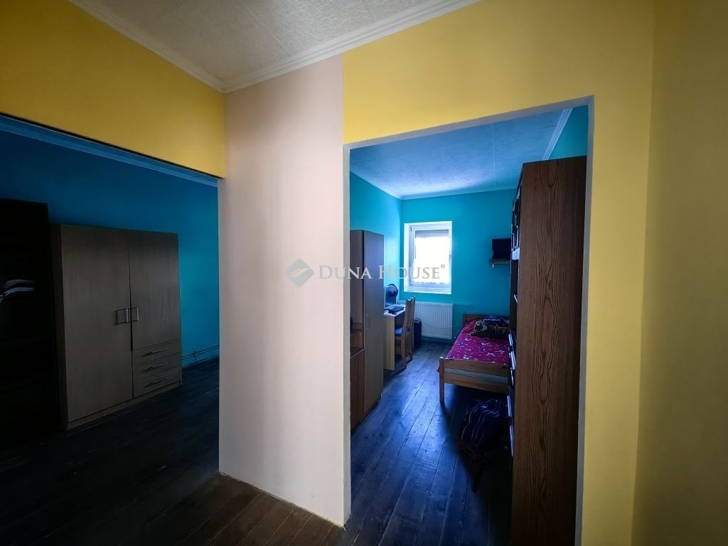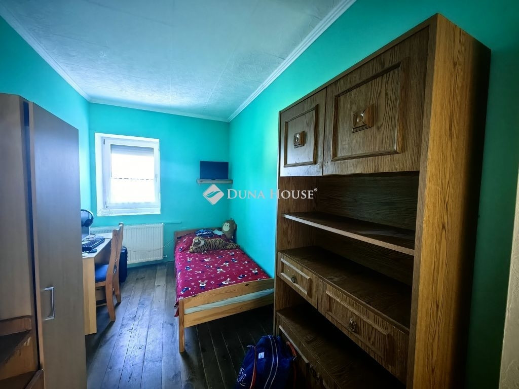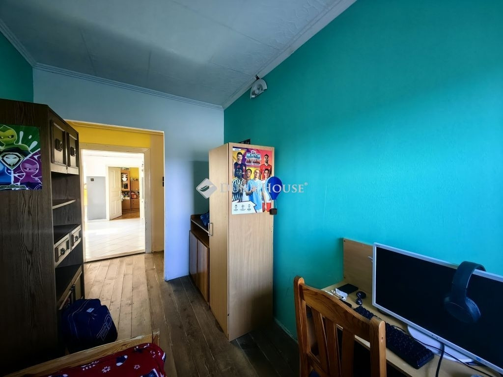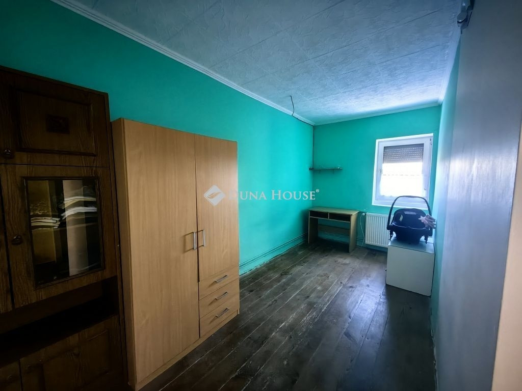 Helyiségeit tekintve: 3 szoba, fürdőszoba, Wc, közlekedő, folyosó, konyha, háztartási helyiséggel rendelkezik az ingatlan.