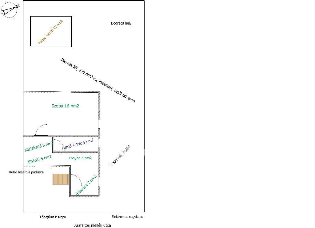 - elektromos nagykapu, 2 autó kocsibeálló hellyel,