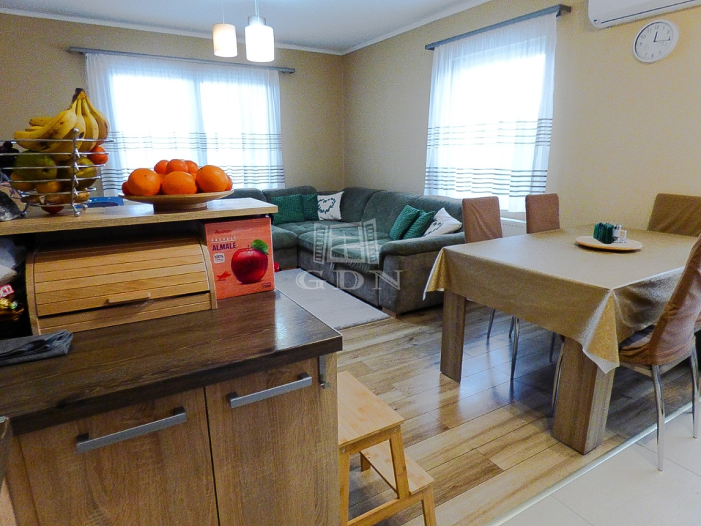 Műanyag thermo nyílászárókkal, redőnnyel, rovarhálóval, kondenzációs gáz cirkóval, klímával felszerelt.