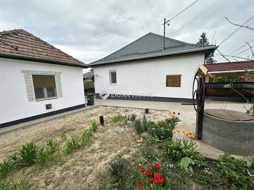 A telek ahogy írtam is 1101 -er amit a kedves Tulajdonosok úgy alakítottak ki, hogy a porta első részén találhatóak az épületek: 75,67 nm-es vegyesfalazatú lakóépület, 12 nm-es tégla falazatú garázs, 10 nm-es tégla falazatú nyárikonyha és pince található, zöld területtel és előkerttel. A föld többi részt gyümölcsfákkal, szőlővel ültették be a maradék zöld felület pedig konyhakertként funkcionált. A növények öntözését fúrt kút biztosítja.