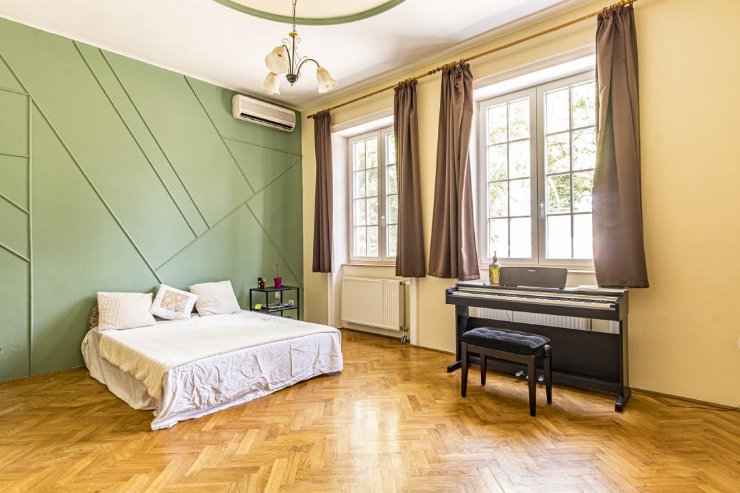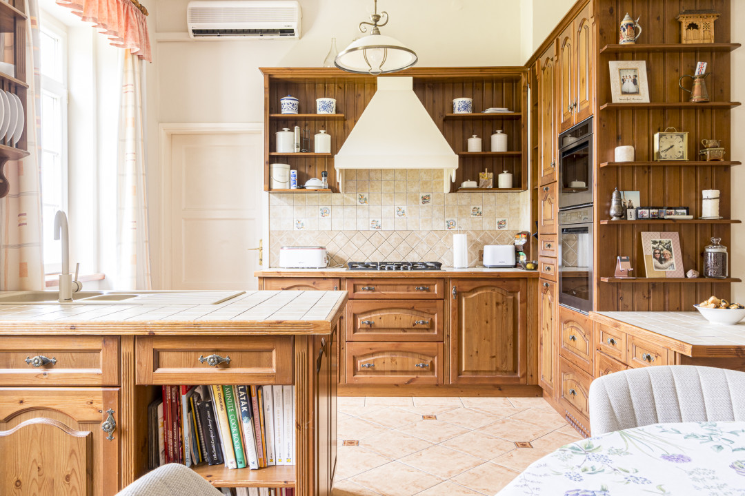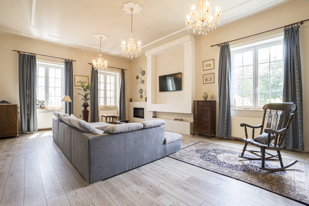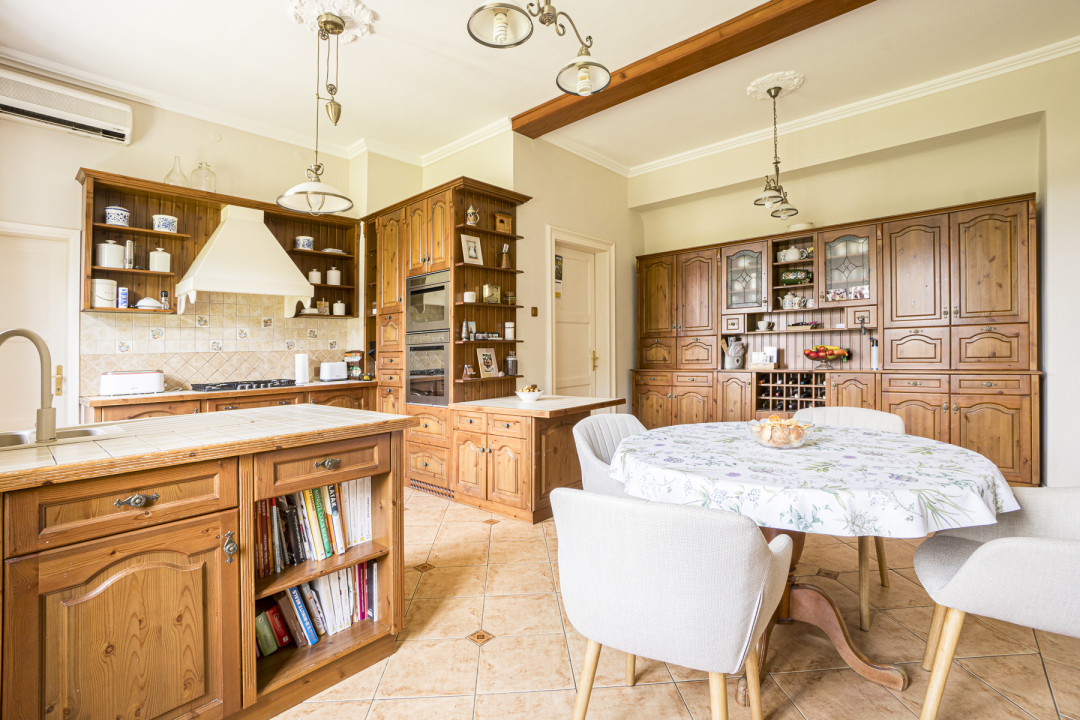 A három szintes kúriát Glatz Ferenc tervezte, melyben a legfontosabb szempont a kényelem és a harmónia. 2 szoba a földszinten helyezkedik el, 3 pedig az emeleten, amelyek közül kettő közvetlenül is kapcsolódik a fenti teraszhoz. Csodaszép látványt nyújt minden napszakban, hiszen a fákra és a lombkoronaszintre nyílik kilátás. Ami a belső tereket illeti, mindkét bejárathoz tartozik 1-1 előszoba és közlekedő, ezen keresztül közelíthető meg a nappali, illetve a társalgó. Egy nyitott márványkandalló teszi még hangulatosabbá az itt eltöltött időt miközben a bordó, korabeli stílust idéző ülőgarnitúra és kristálycsillár varázsolja el az itt lakókat, valamint a vendégeket egyaránt. Több szobában van kályha és látványkandalló, ugyanakkor kúria fűtéséről központi fűtés gondoskodik. A fa konyhabútorokat ide tervezték, és a konyhai eszközöket is beépítették. Igazi természetközeli, elegáns hatást nyújt, tökéletesen illik a kúria hangulatához. A lakószint alatt pince is található.