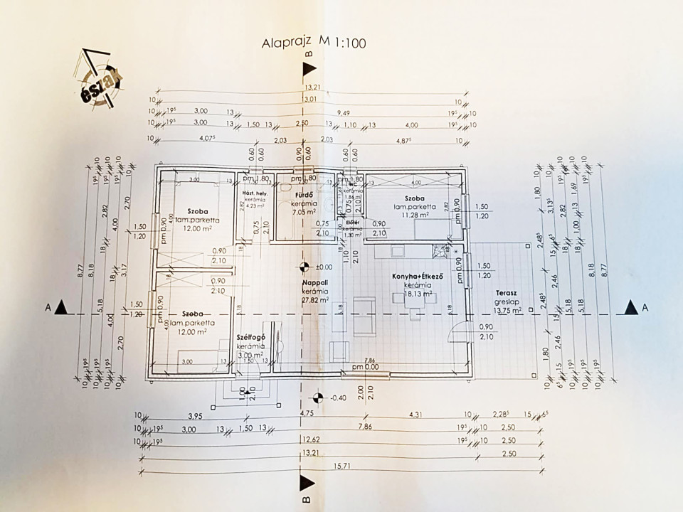 - 3 szoba (12, 12, 11 m2, laminált padló)